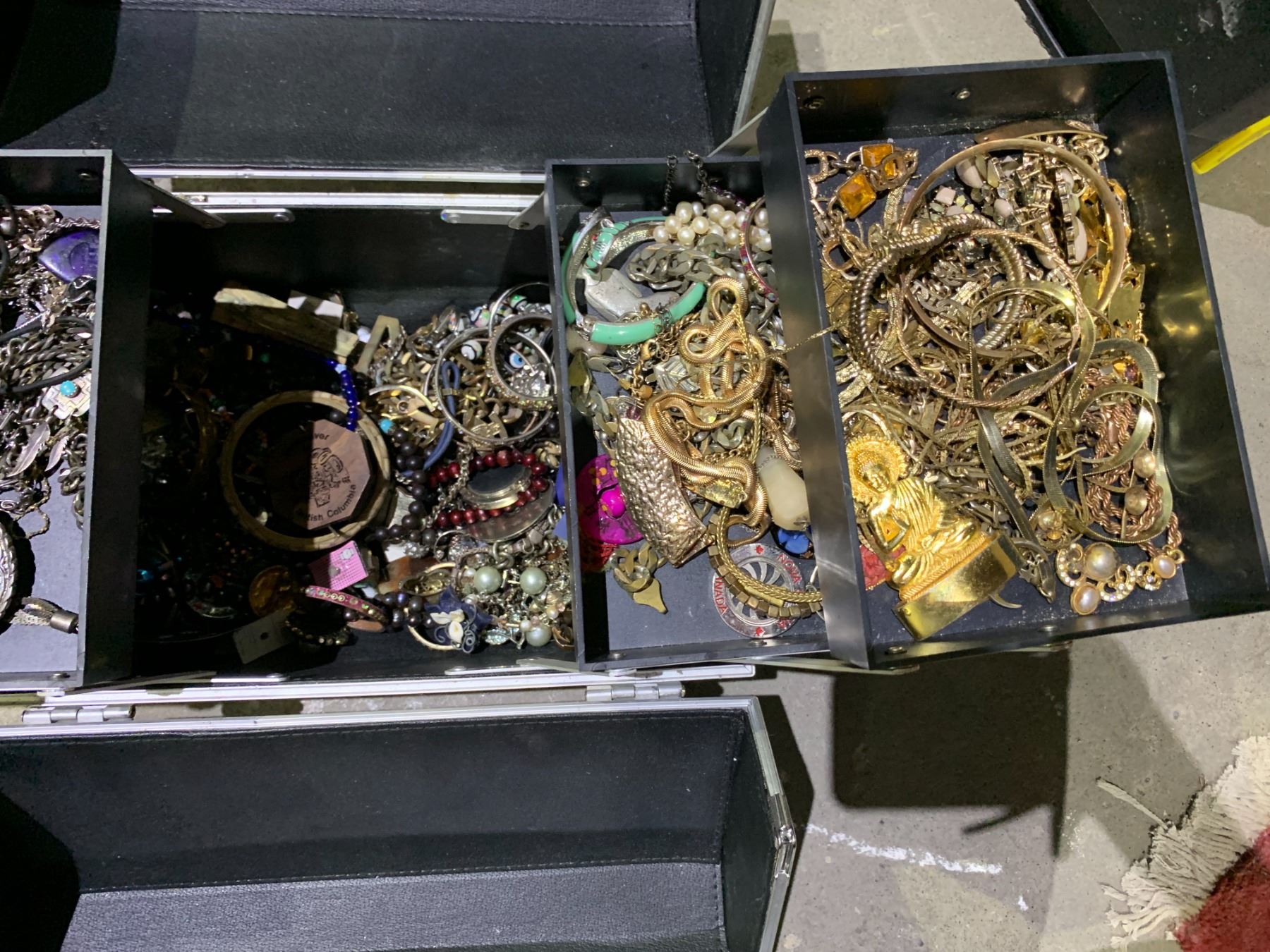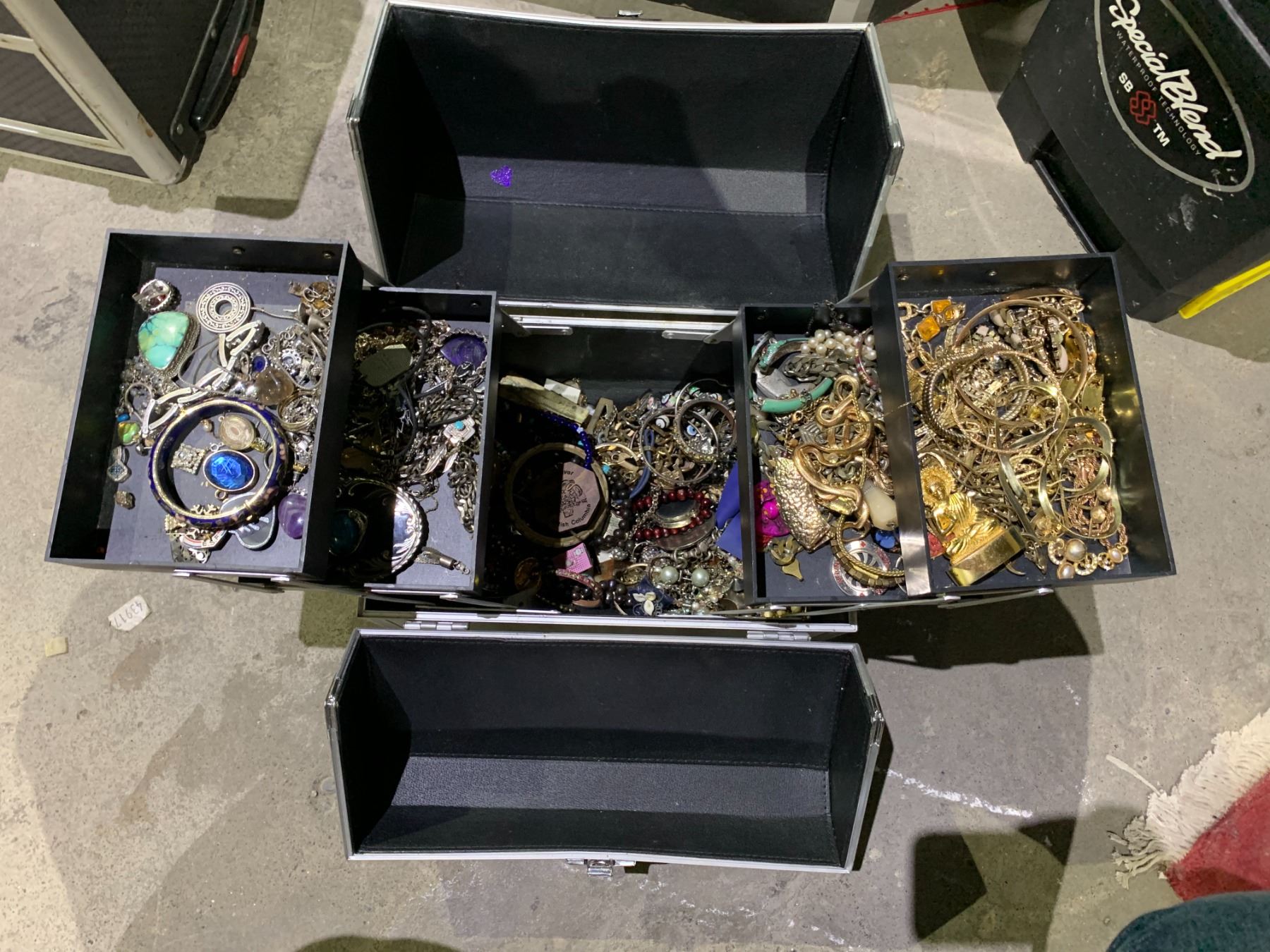 FOLDOUT JEWELRY BOX WITH ASSORTED JEWELRY CONTENTS