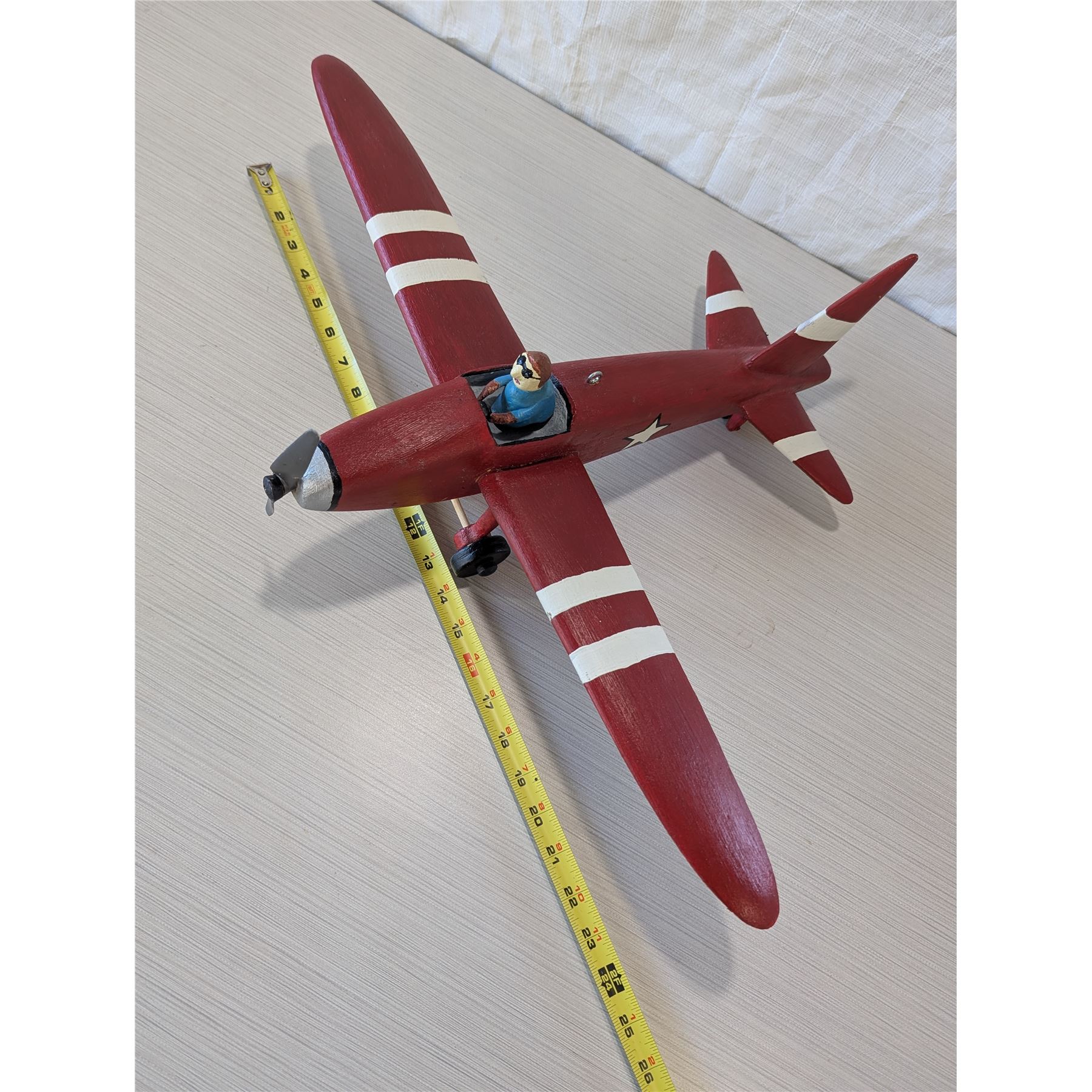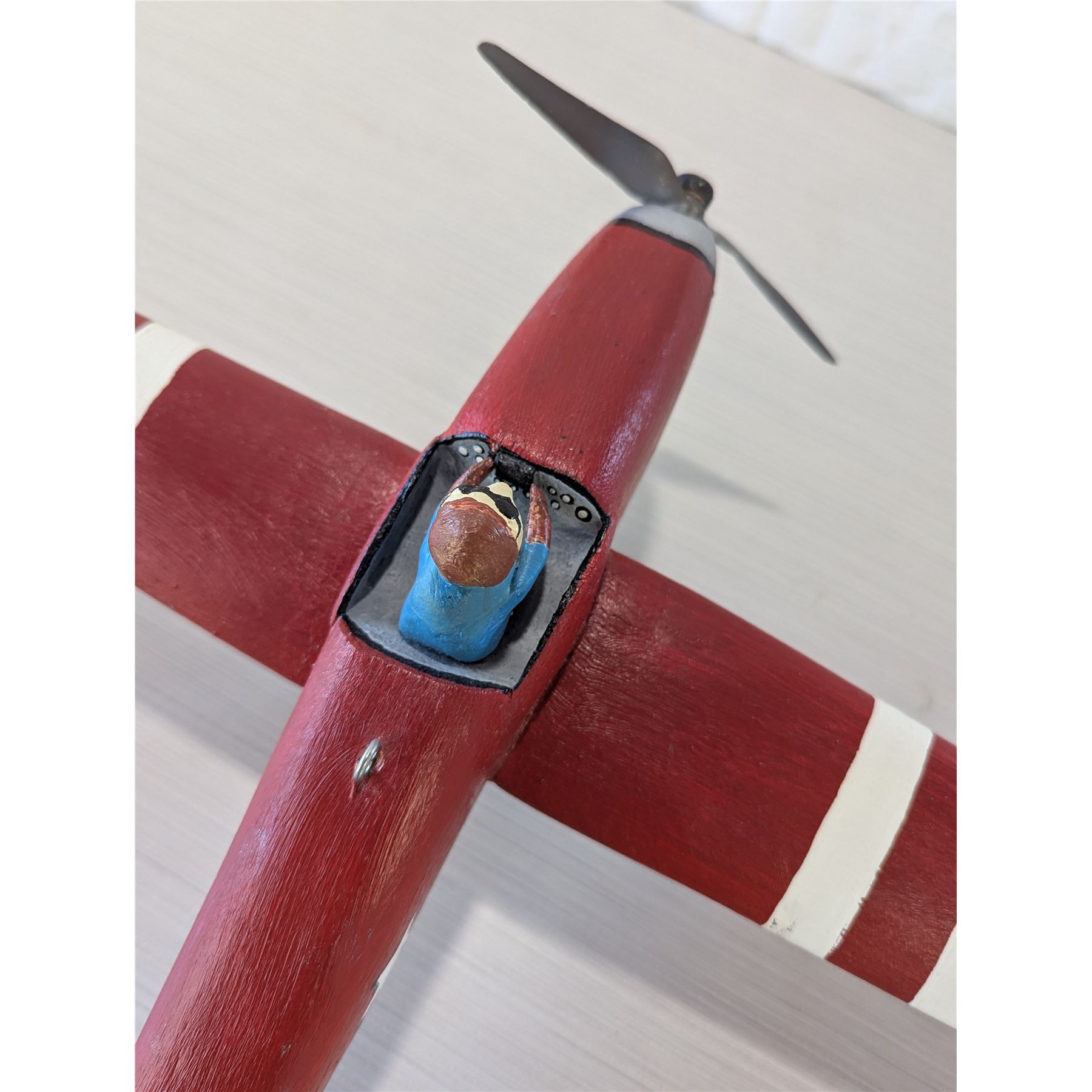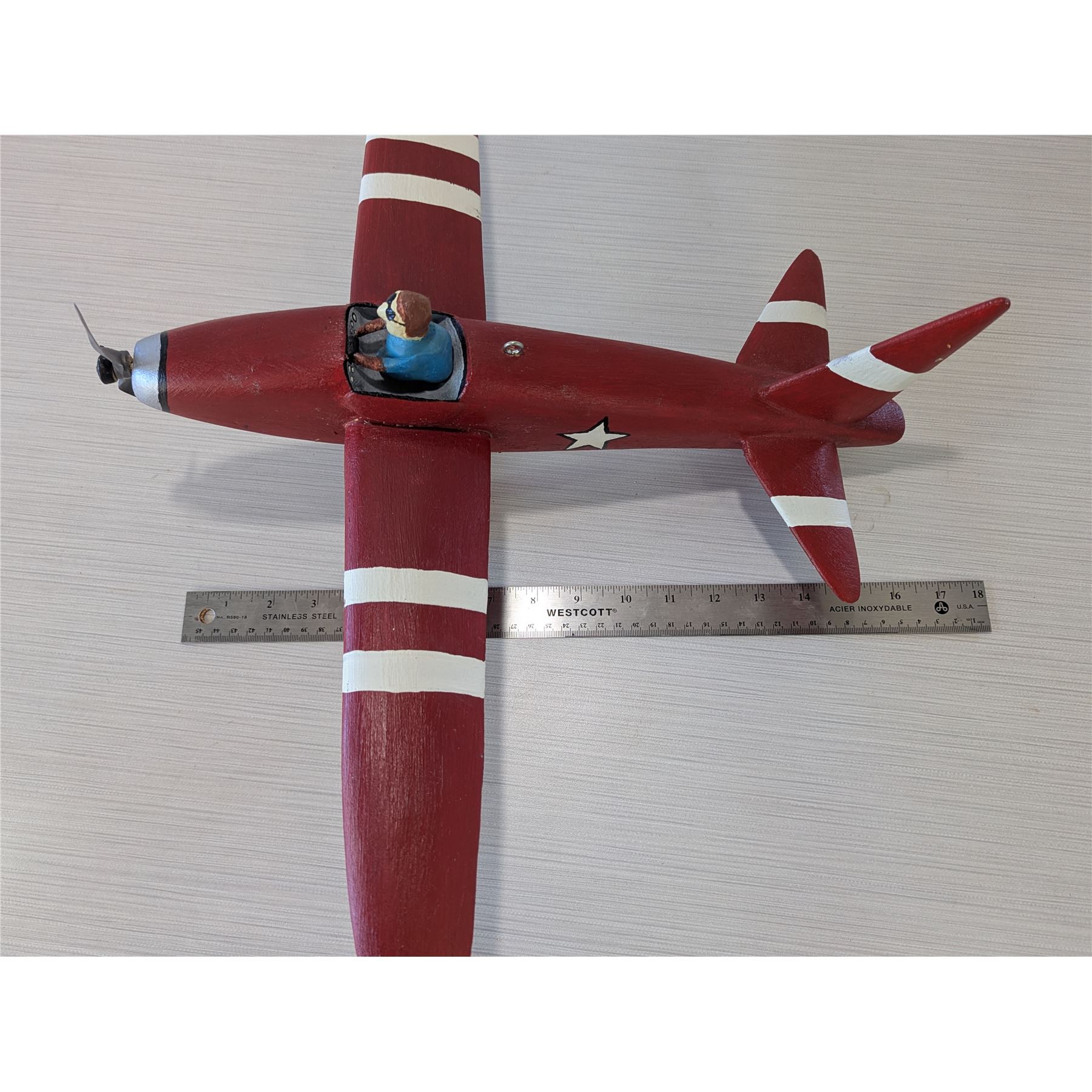 Folk Art model airplane, similar to a de Havilland DH.88 Comet. Wing span 24" and 16" fuselage.