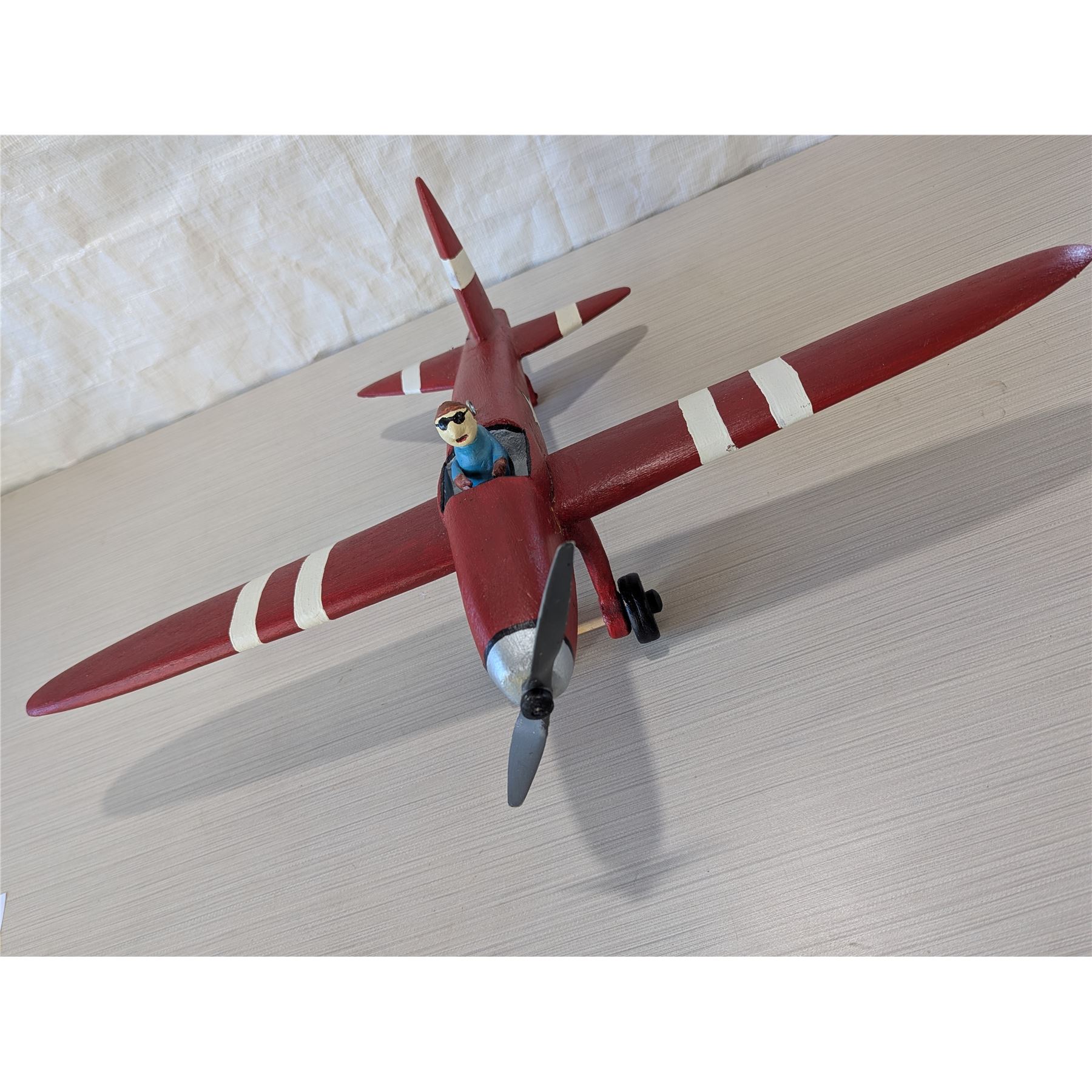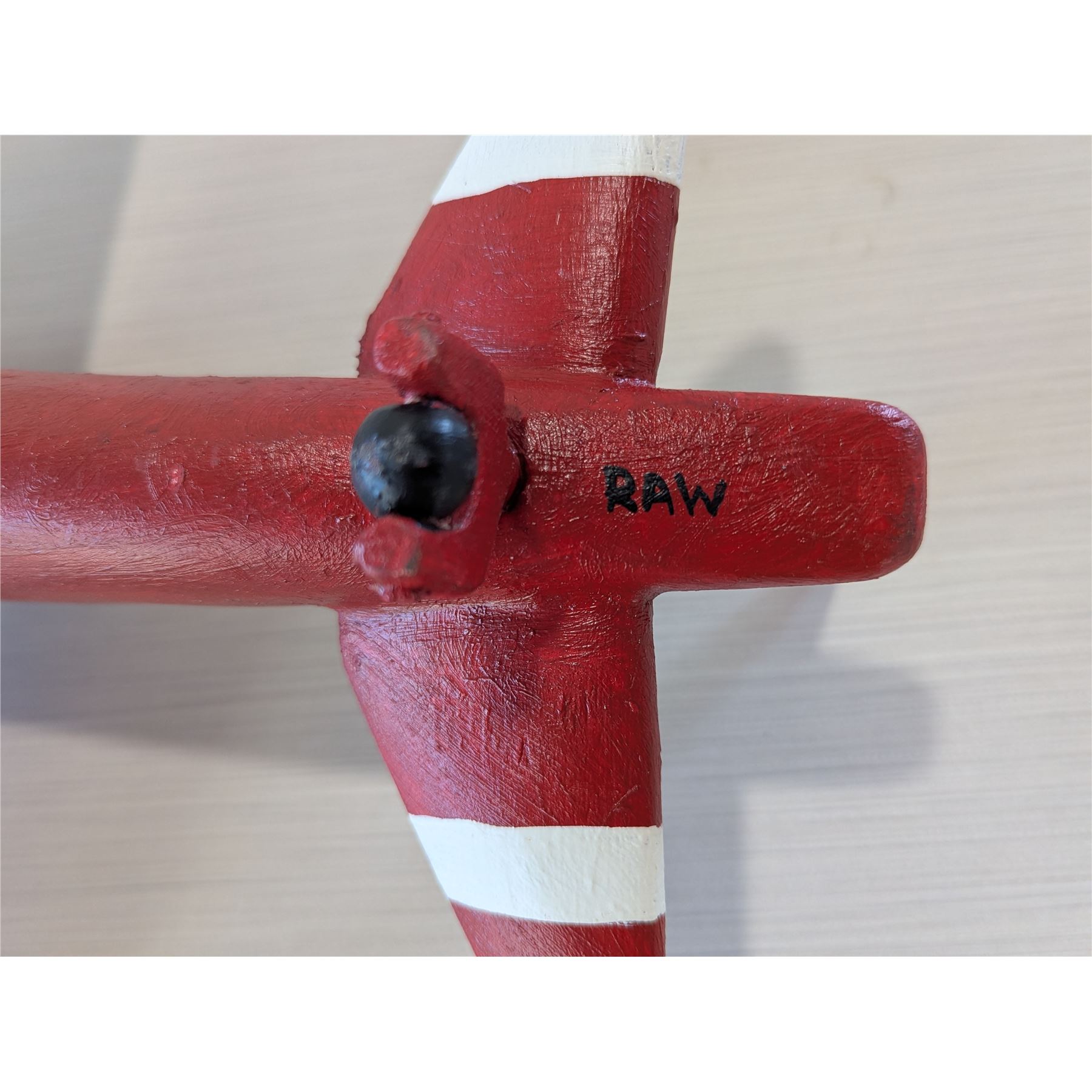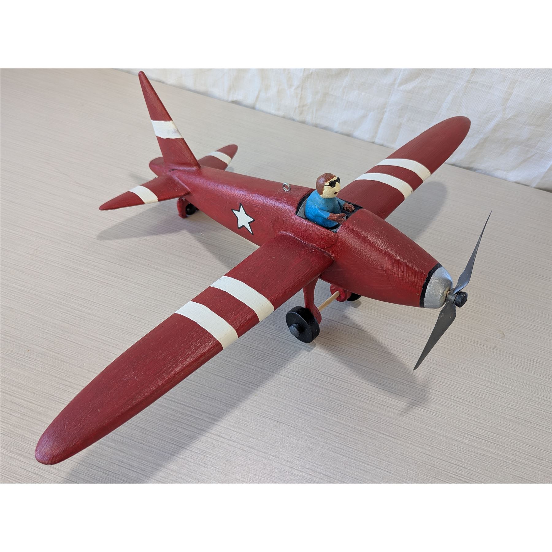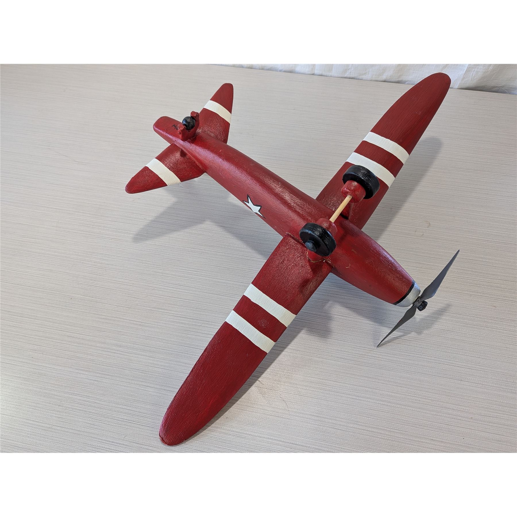 Folk Art model airplane, similar to a de Havilland DH.88 Comet. Wing span 24" and 16" fuselage.