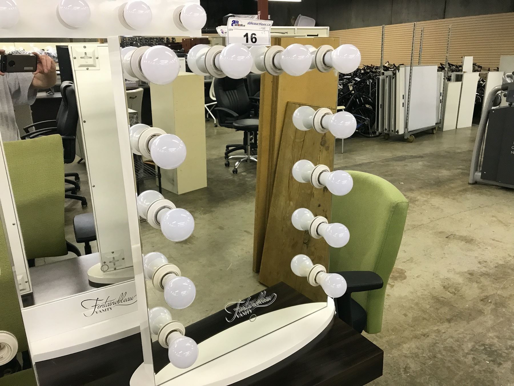 FONTAINEBLEAU VANITY MIRROR WITH TOUCH CONTROLS, 12 DIMMABLE DAYLIGHT LED BULBS, 2 SIDE MOUNTED POWER OUTLETS, REMOVABLE BASE AND WALL MOUNTING POINTS ON REAR, 19 3/4" WIDE X 27.5" TALL X 3" DEEP (WITHOUT STAND), SEAMLESS BORDER AND WHITE BASE