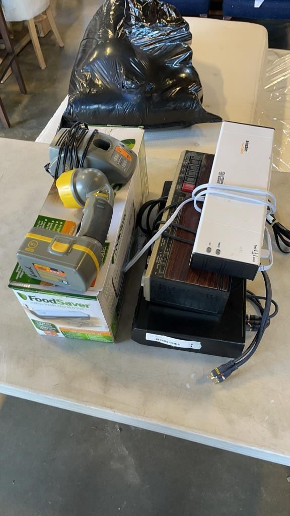 FOOD SAVER MACHINE, CORDLESS FLASHLIGHT, LAMINATOR,DVD PLAYER AND CASSETTE PLAYER