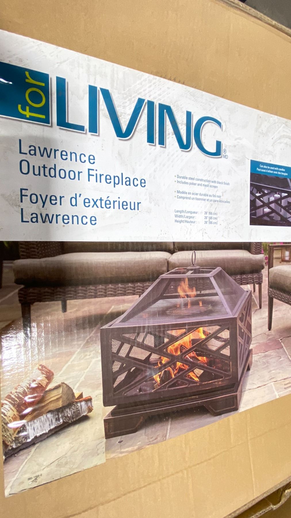 FOR LIVING LAWRENCE BLACK METAL OUTDOOR WOOD BURNING FIREPLACE *IN BOX*