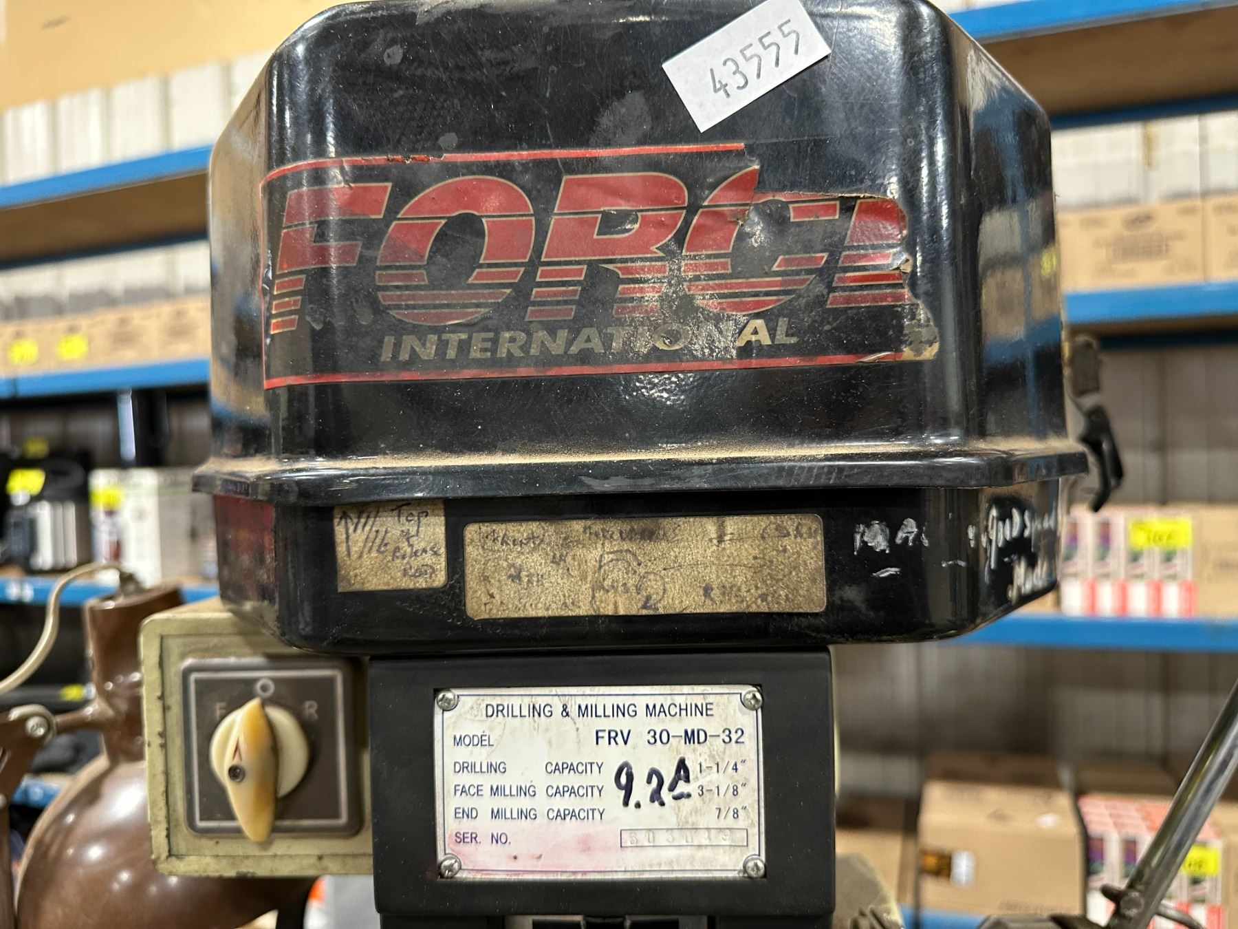 FORCE INTERNATIONAL FRV 30-MD-32 INDUSTRIAL ELECTRIC MILLING / DRILLING MACHINE WITH SOUTH BEND EQUIPMENT VISE