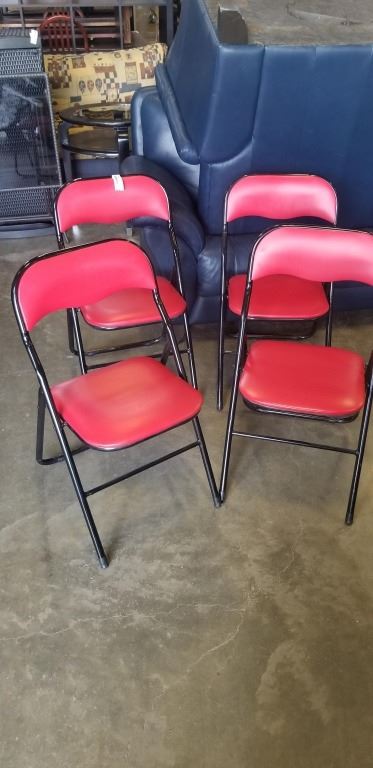 FOUR MATCHING RED AND BLACK FOLDING CHAIRS