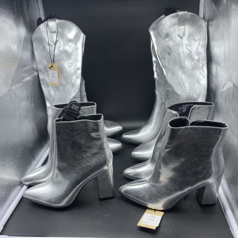 FOUR PAIRS OF NEW SIZE 7 MADDEN NYC HIGH HEEL AND LOW HEEL BOOTS RETAIL $240