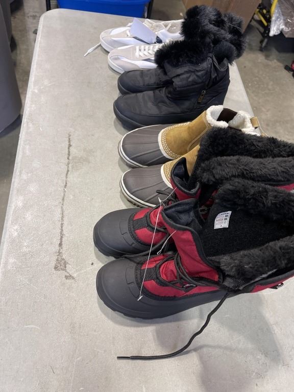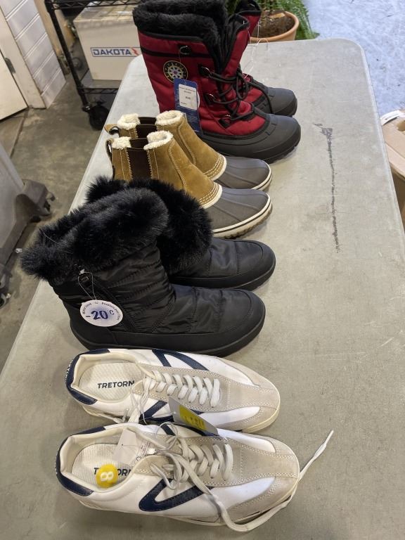 FOUR PAIRS OF NEW SIZE 8 WINTER BOOTS SHOES AND EDDIE BAUER BOOTS