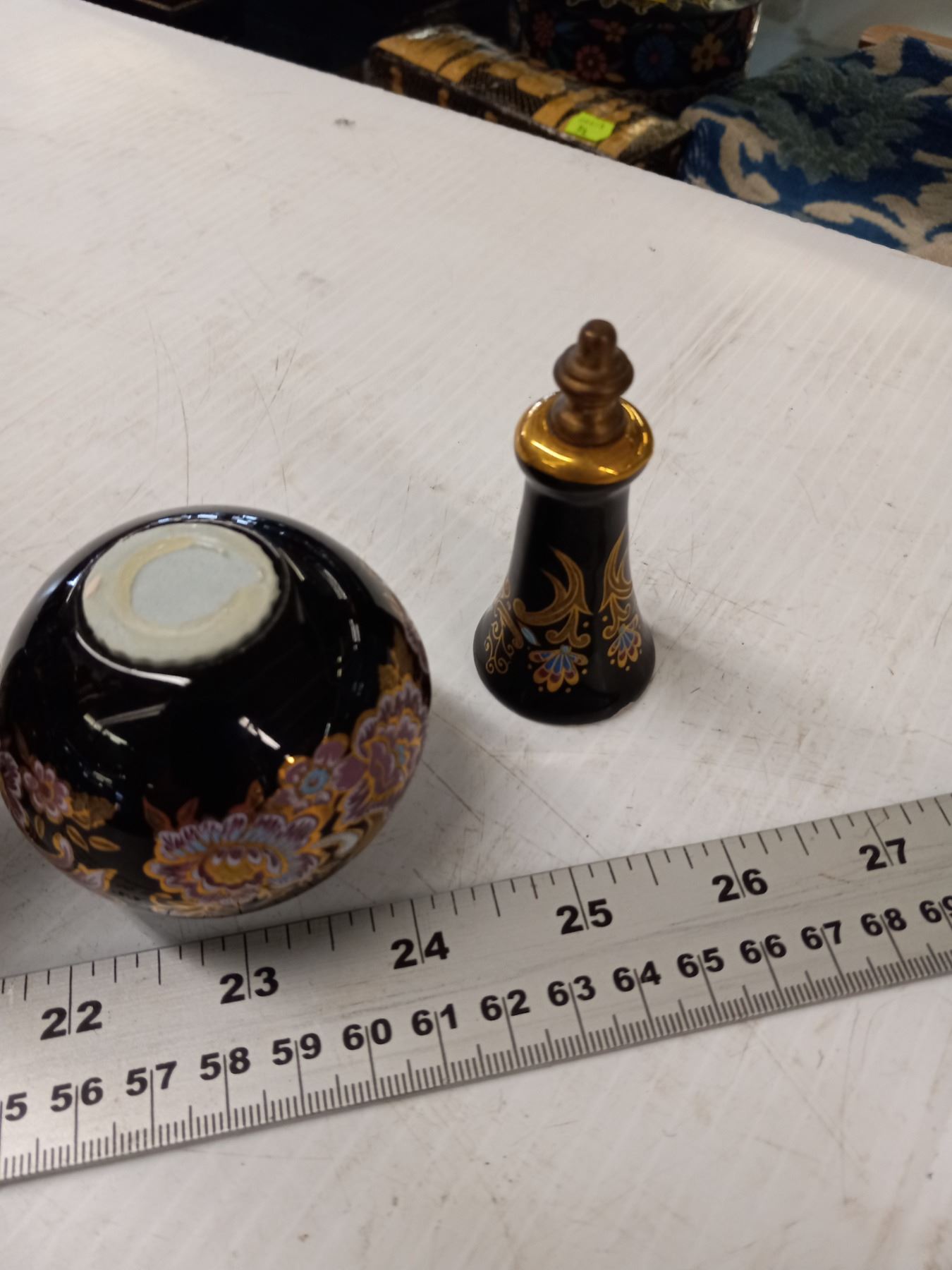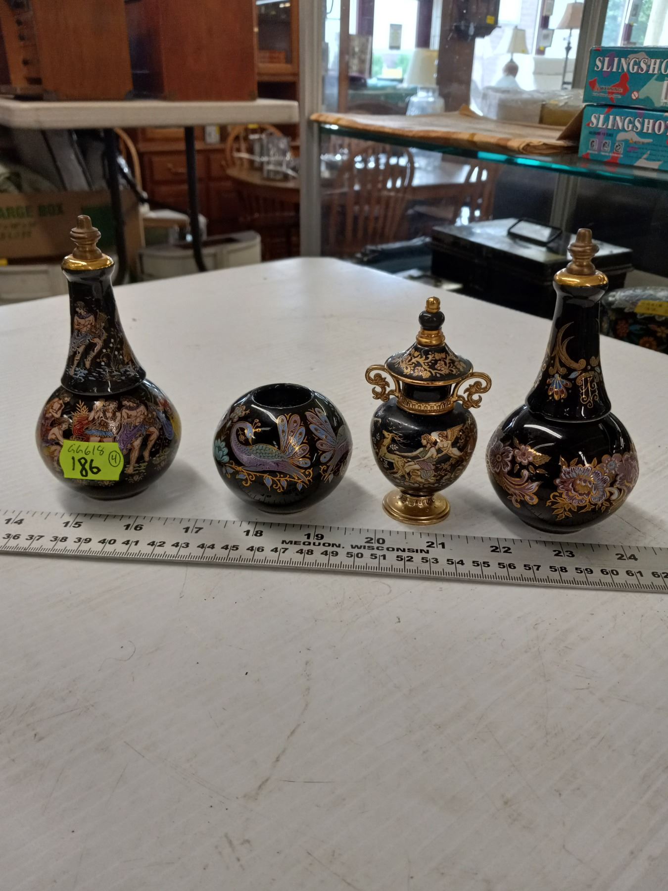 FOUR PIECE LADIES ELABORATE PAINTED PURFUME AND CANDLE SET