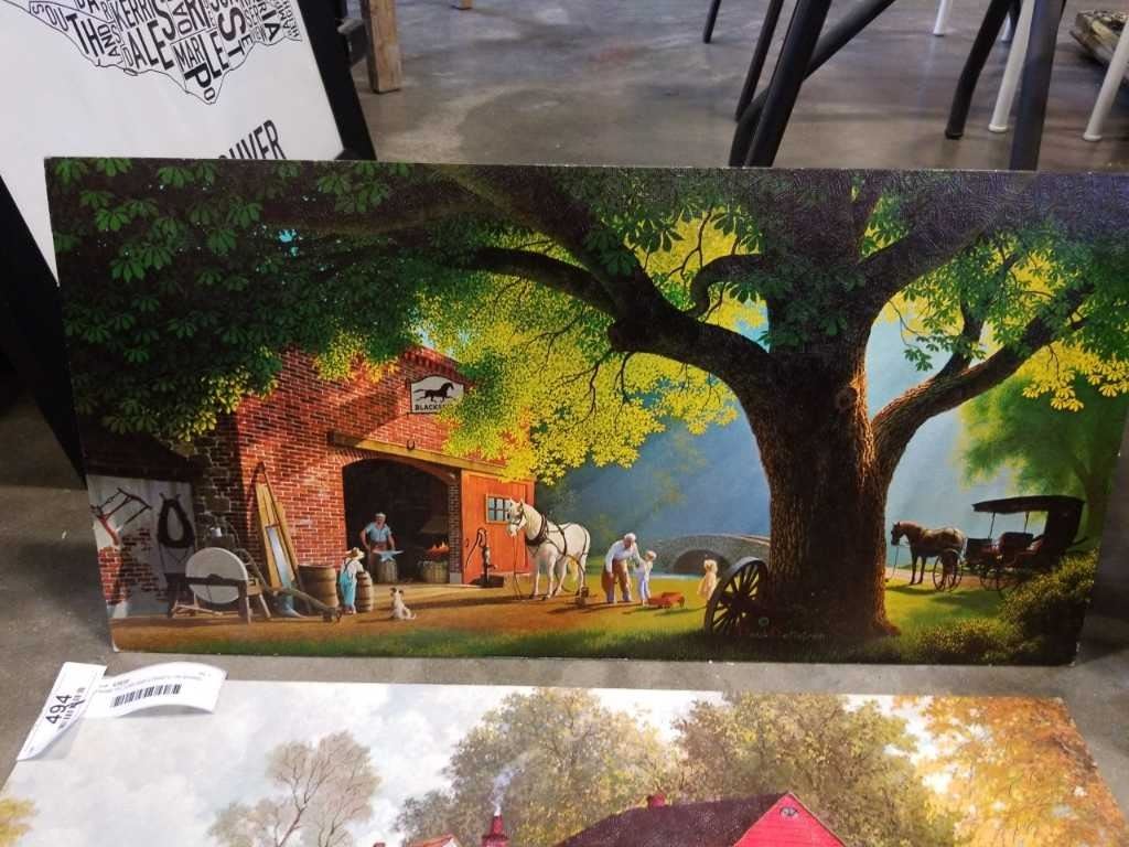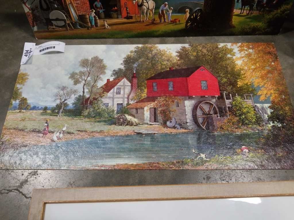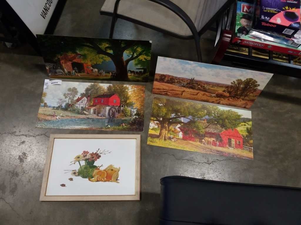 FRAME PICTURE AND 3 PRINTS ON BOARD