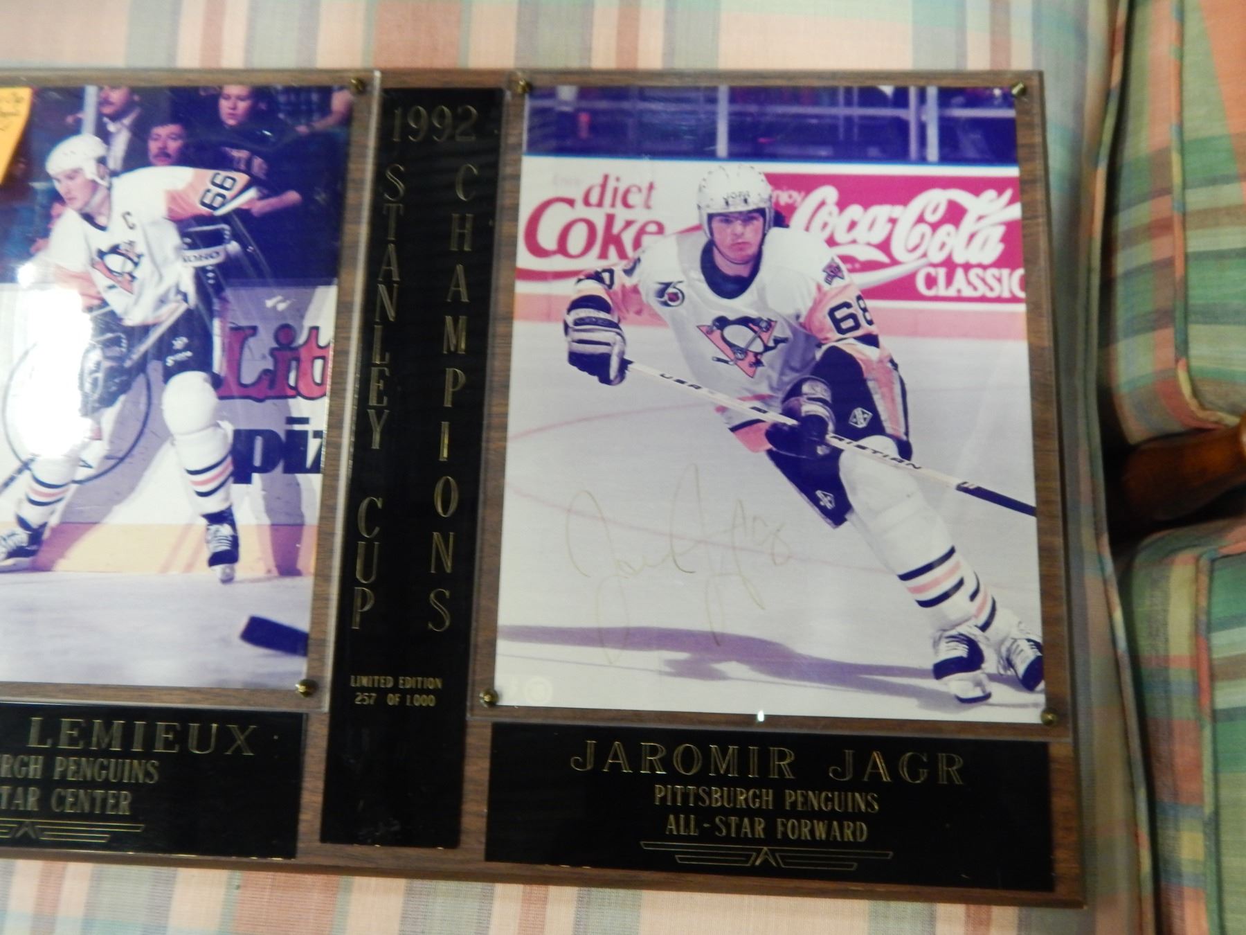 FRAMED 1992 STANLEY CUP CHAMPIONS LEMIEUX AND JAGR LIMITED EDITION 257/1000
