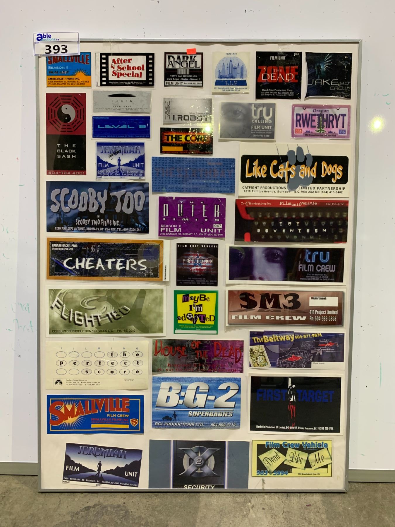 FRAMED ASSORTED FILM PRODUCTIONS STICKERS INCLUDING; SMALLVILLE SEASON 2, I, ROBOT, THE OUTER LIMITS SEASON 6 & MORE