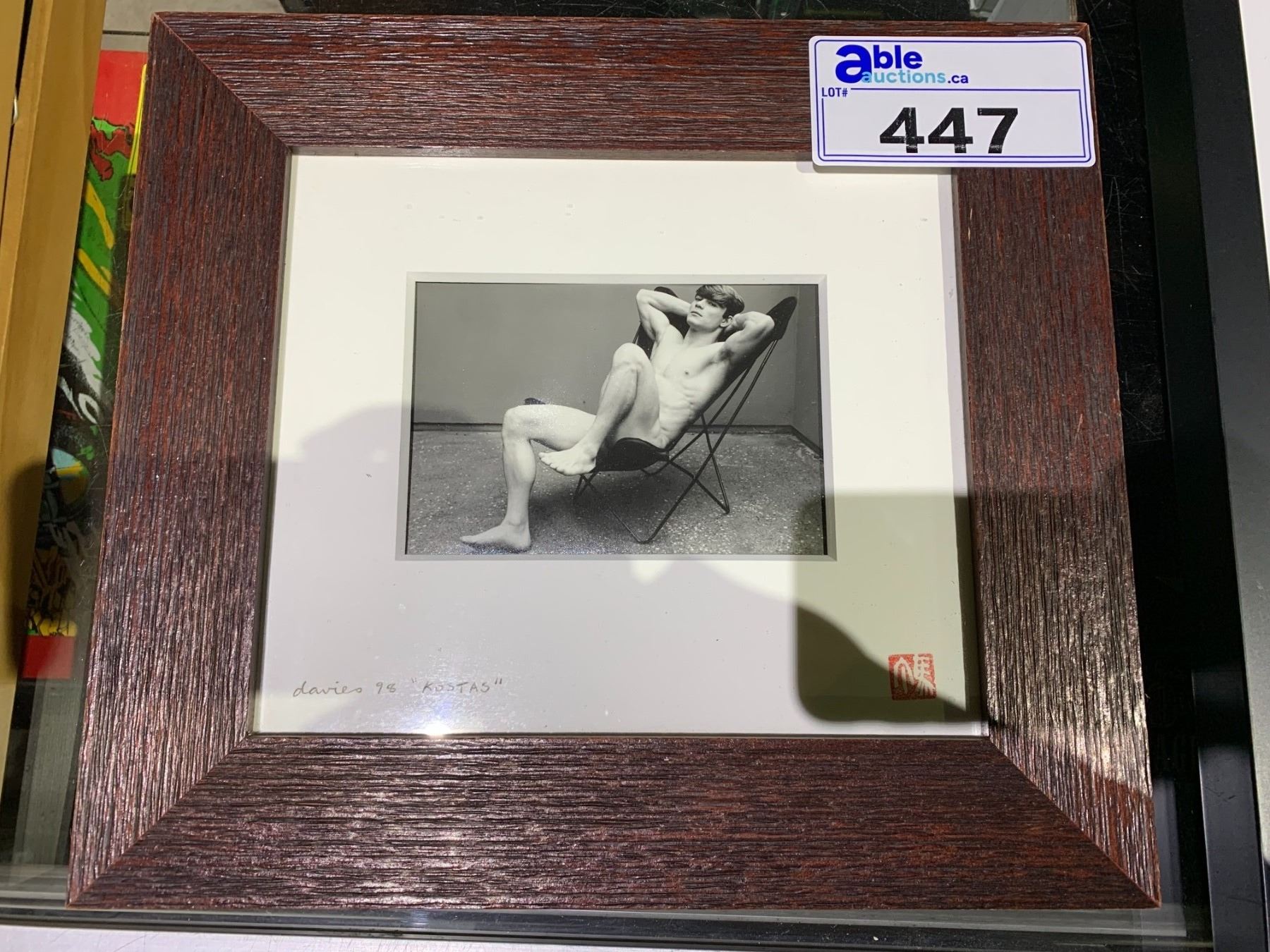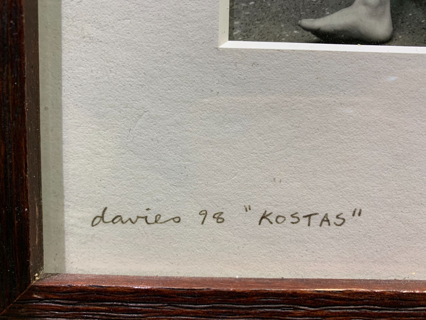 FRAMED B&W PHOTOGRAPH BY DAVIES TITLED "KOSTAS" 13.5" X 12"