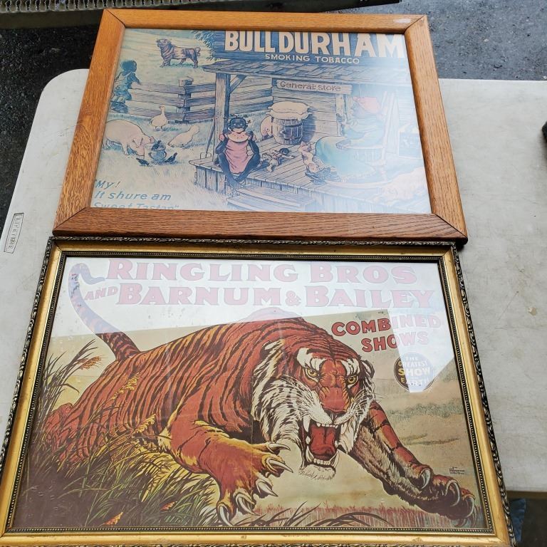 FRAMED BLACK AMERICANA AND RINGLING BROS ADVERTS