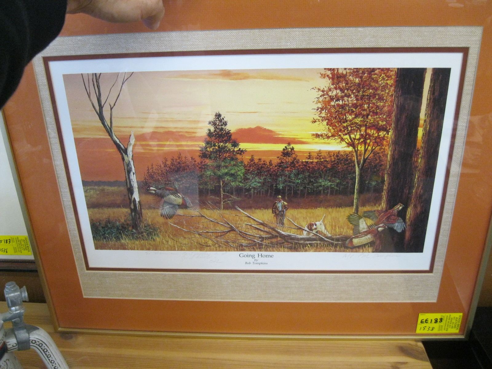 FRAMED HUNTING PICTURE, ARTIST PROOF, SIGNED BY BOB THOMPKINS, "GOING HOME"