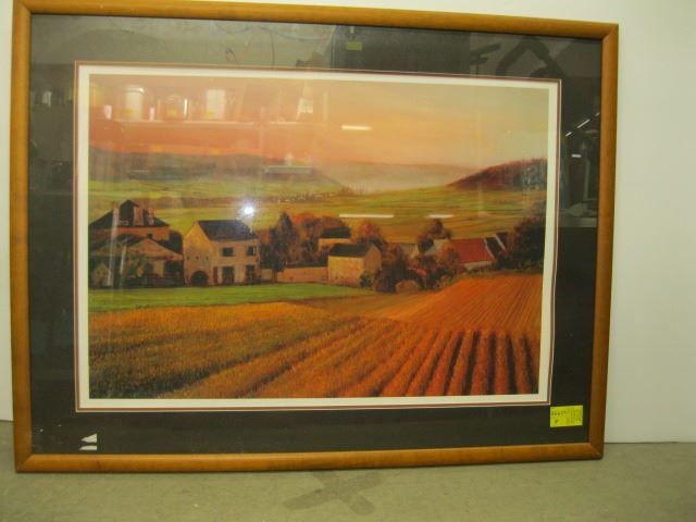FRAMED LARGE PICTURE OF BUILDINGS AND WHEAT FIELDS
