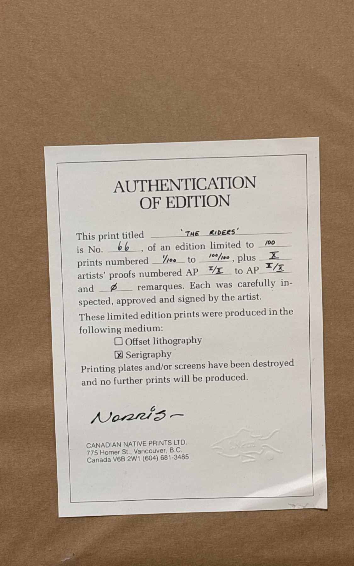 FRAMED LEP (66/100) BY LEN NORRIS TITLED "THE RIDERS" WITH COA 18" X 21"