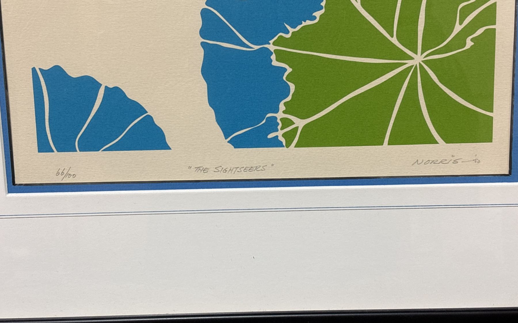 FRAMED LEP (66/100) BY LEN NORRIS TITLED "THE SIGHTSEERS" WITH COA 18.5" X 21"