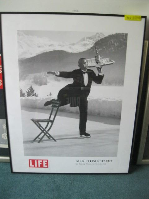 FRAMED LIFE PHOTO OF "ICE SKATING WAITER", ALFRED EISENSTAEDT, ST. MORITZ