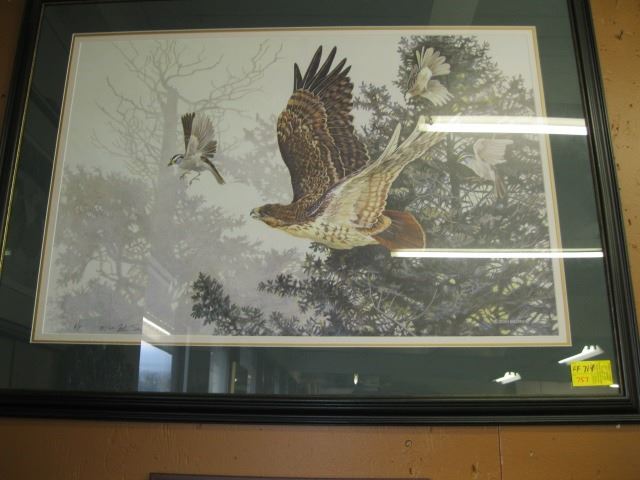 FRAMED NUMBERED PRINT OF "THE HAWK" NO. 25 OF 60 BY JOHN SALSNEK