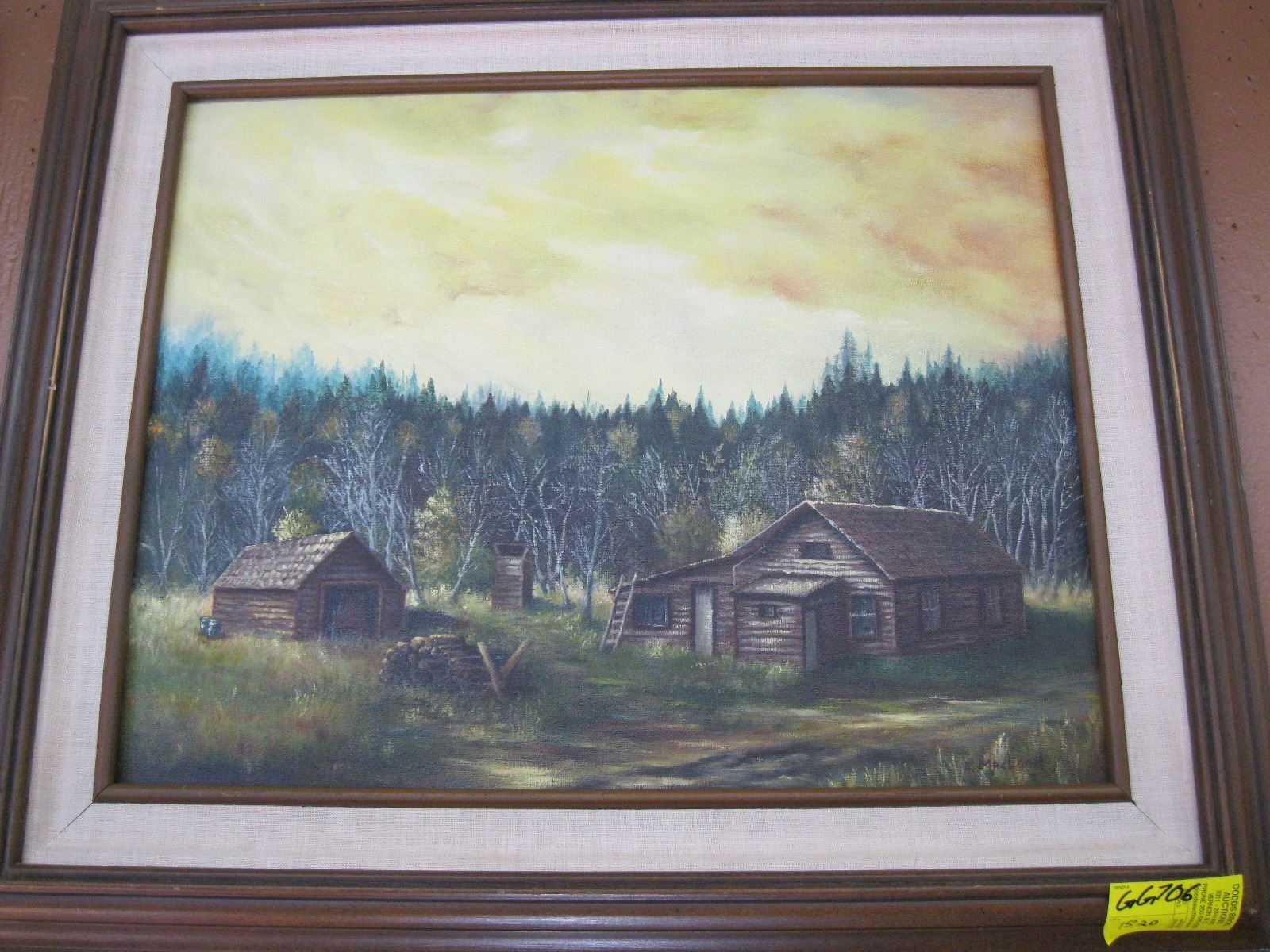 FRAMED ORIGINAL PAINTING OF THE LOG CABIN BY A. MACLUND