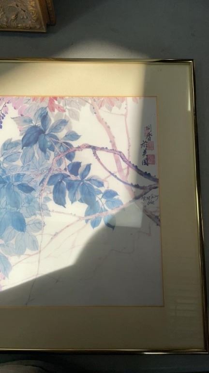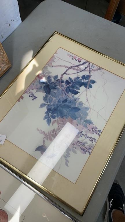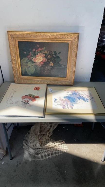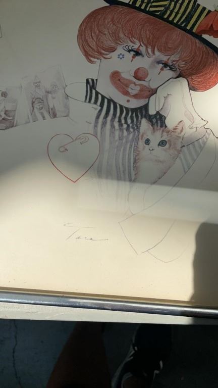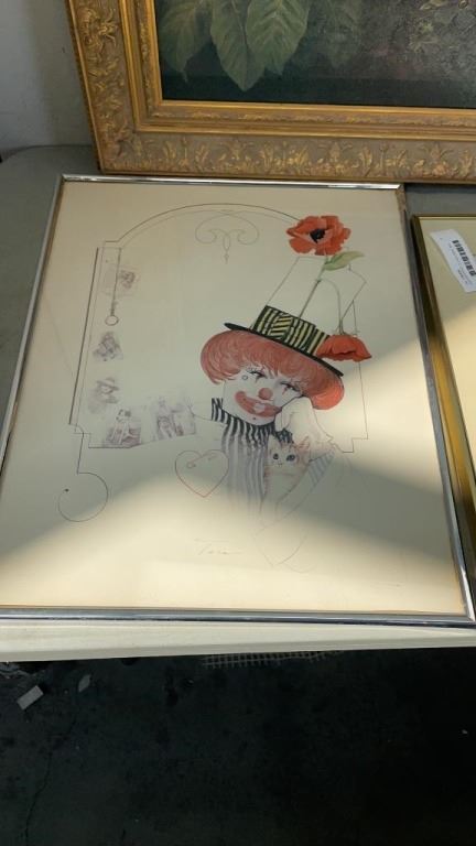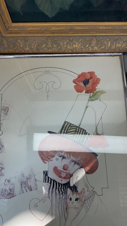 FRAMED PAINTING WITH EASTERN PRINT AND CLOWN PRINT