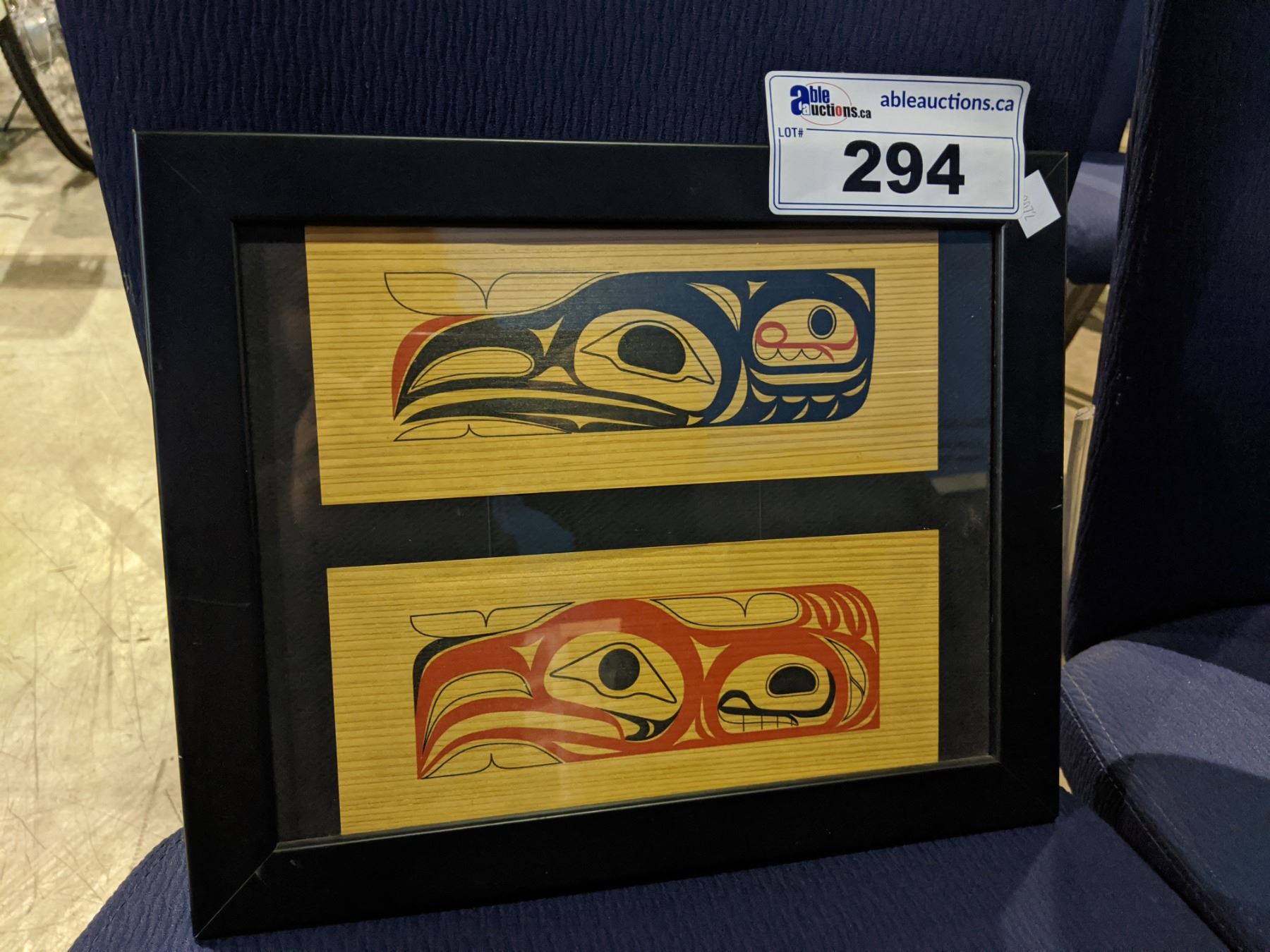 FRAMED PAIR OF HAND PAINTED CEDAR STRIPS