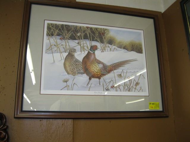 FRAMED PRINT BY MORGAN WARREN, "WINTER TAPESTRY" NO. 1867 OUT OF 2500, OF RINGNECK PHEASANTS