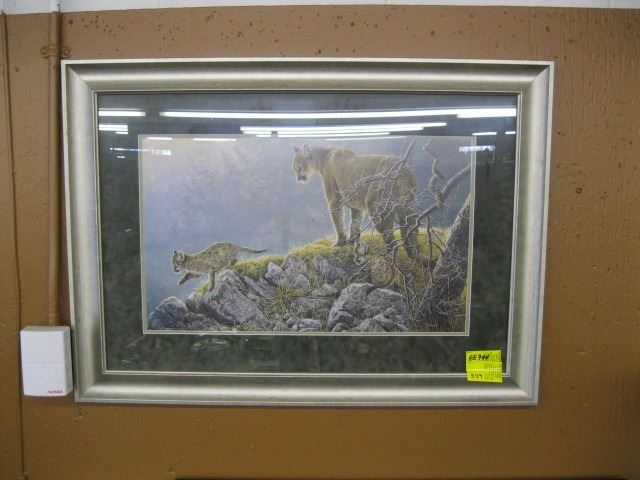 FRAMED PRINT BY ROBERT BATEMAN OF 'COUGAR & CUB'