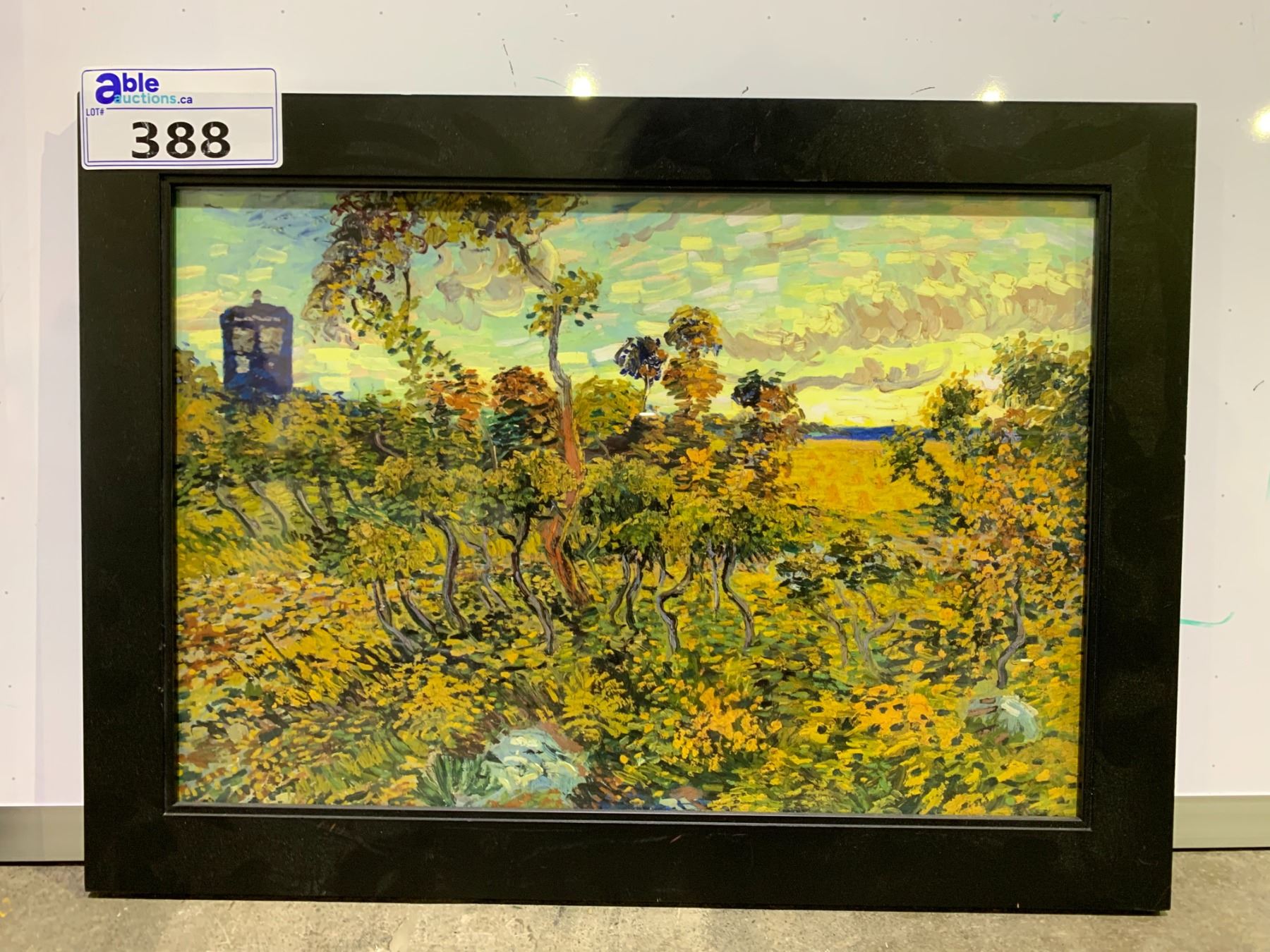 FRAMED PRINT BY VINCENT VAN GOGH TITLED "SUNSET AT MONTMAJOUR" 22"X16"