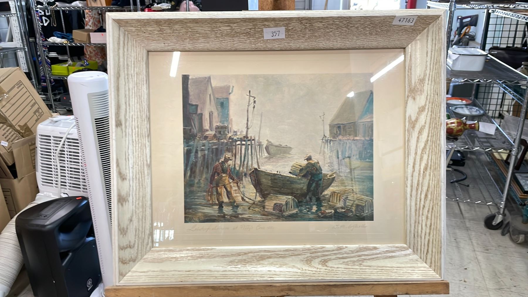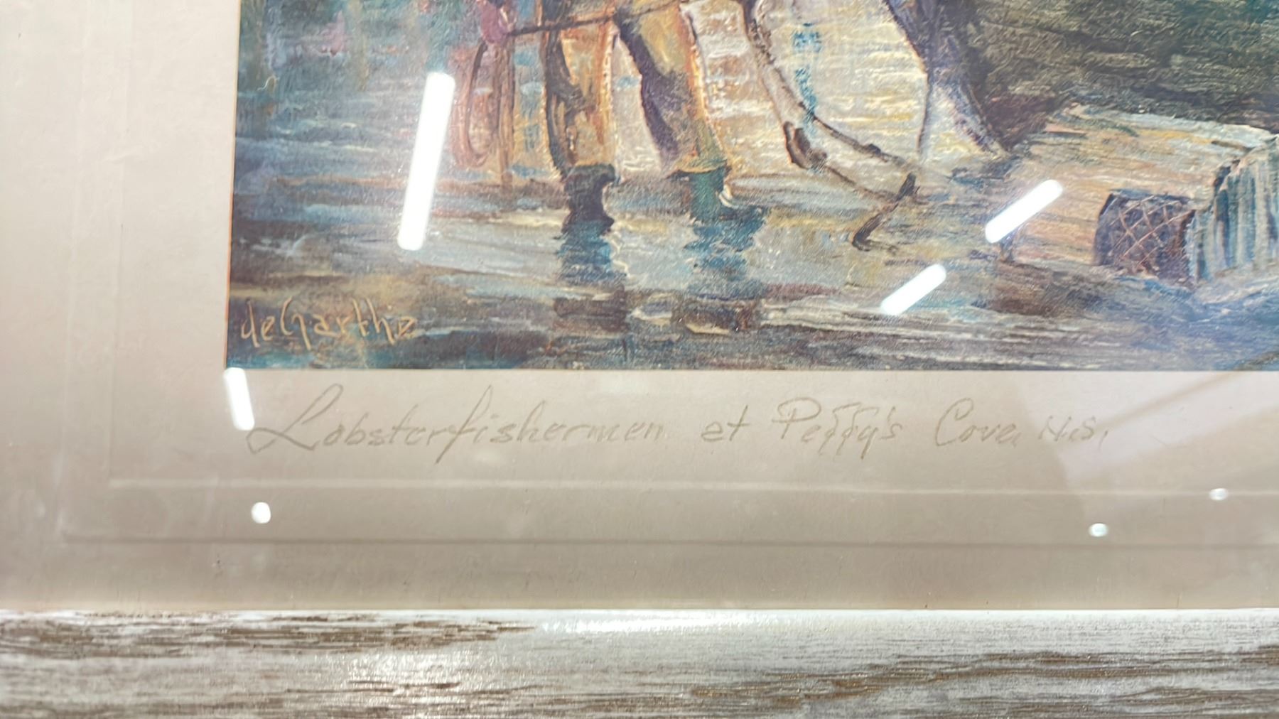 FRAMED PRINT BY WILLIAM DEGARTHE TITLED "LOBSTER FISHERMEN AT PEGGY'S COVE N.S." 21.5" X 17.5"