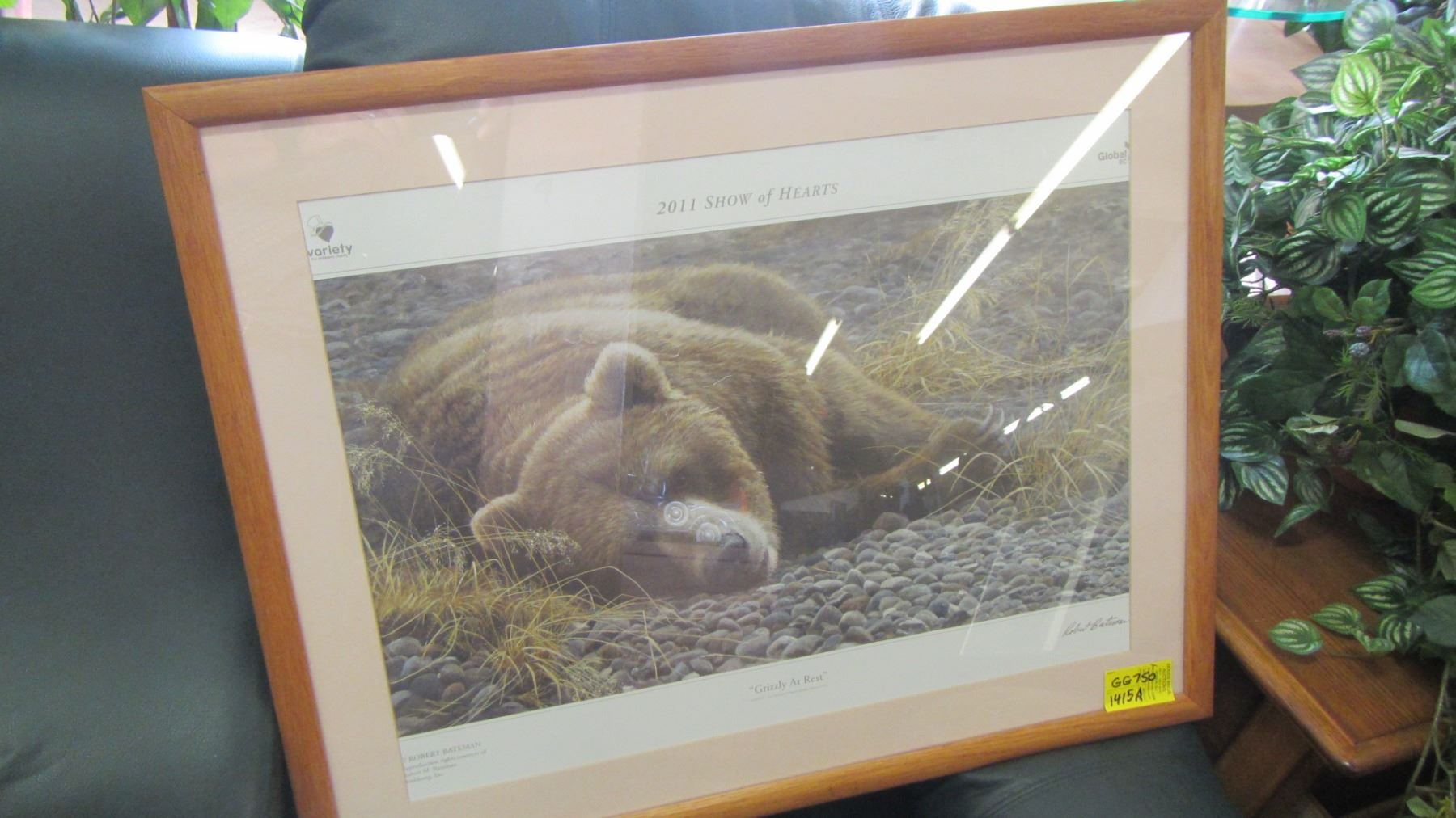 FRAMED ROBERT BATEMAN 2011 SHOW OF HEARTS PRINT OF GRIZZLY AT REST
