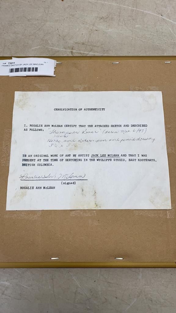 FRAMED SKETCH BY JACK LEE MACLEAN MAR 6/73 WITNESS AND CERTIFIED