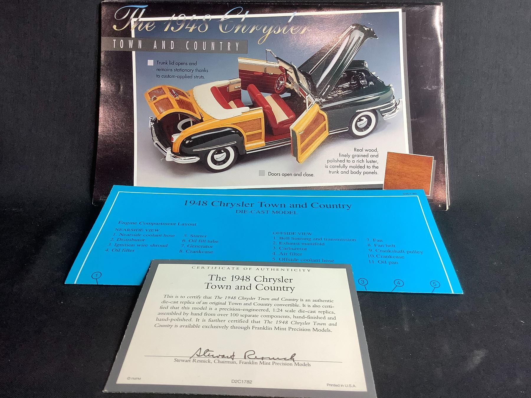 FRANKLIN MINT PRECISION MODELS THE 1948 CHRYSLER TOWN AND COUNTRY 1:24 SCALE WITH COA NOTE WINDSHIELD DAMAGED