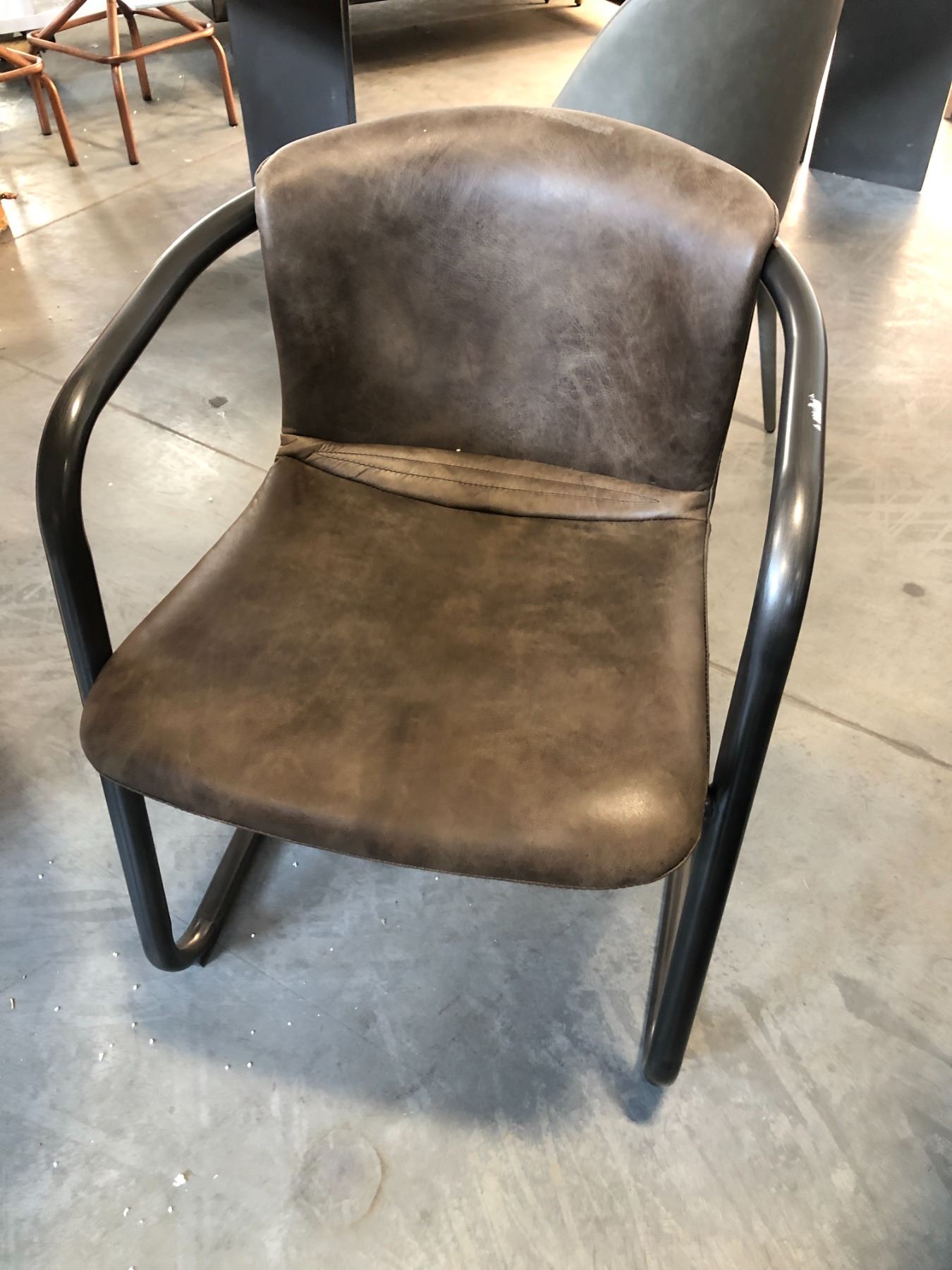 FREEMAN GRAZED BROWN LEATHER DINING ARM CHAIR