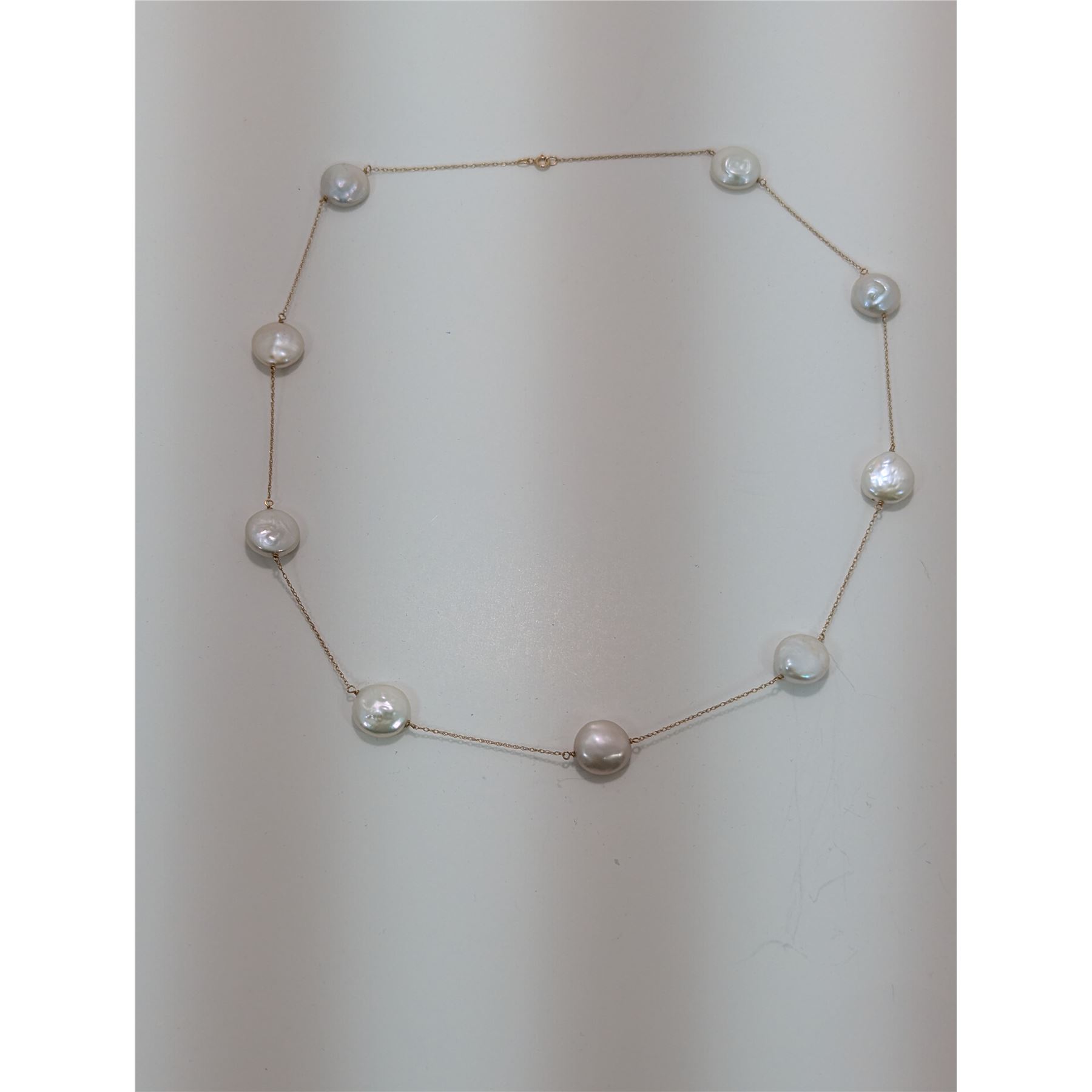 Freshwater pearl 19" necklace with a yellow gold chain.