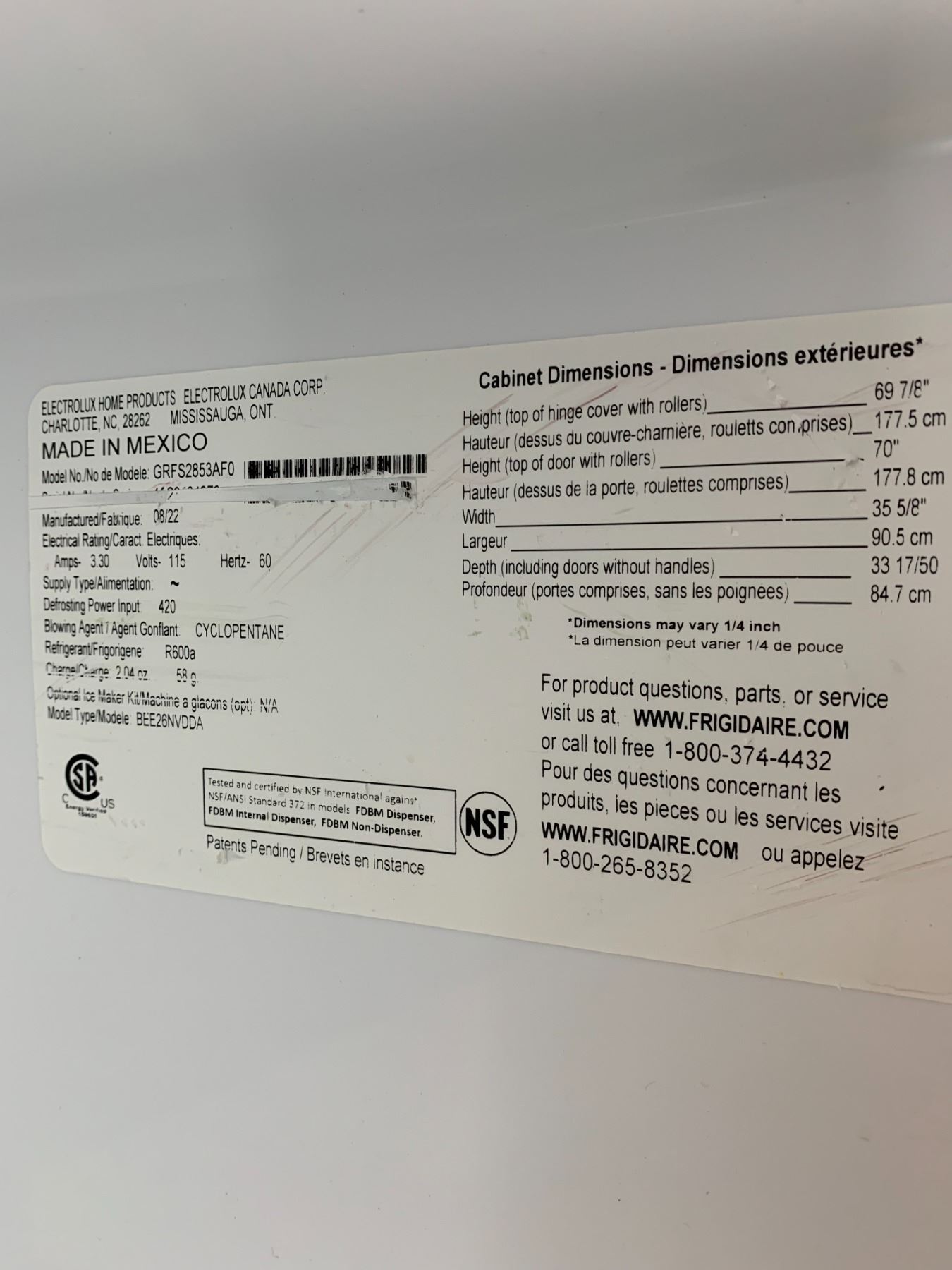 FRIGIDAIRE GALLERY STAINLESS STEEL FRENCH DOOR FRIDGE WITH ROLLOUT FREEZER & WATER/ICE DISPENSER