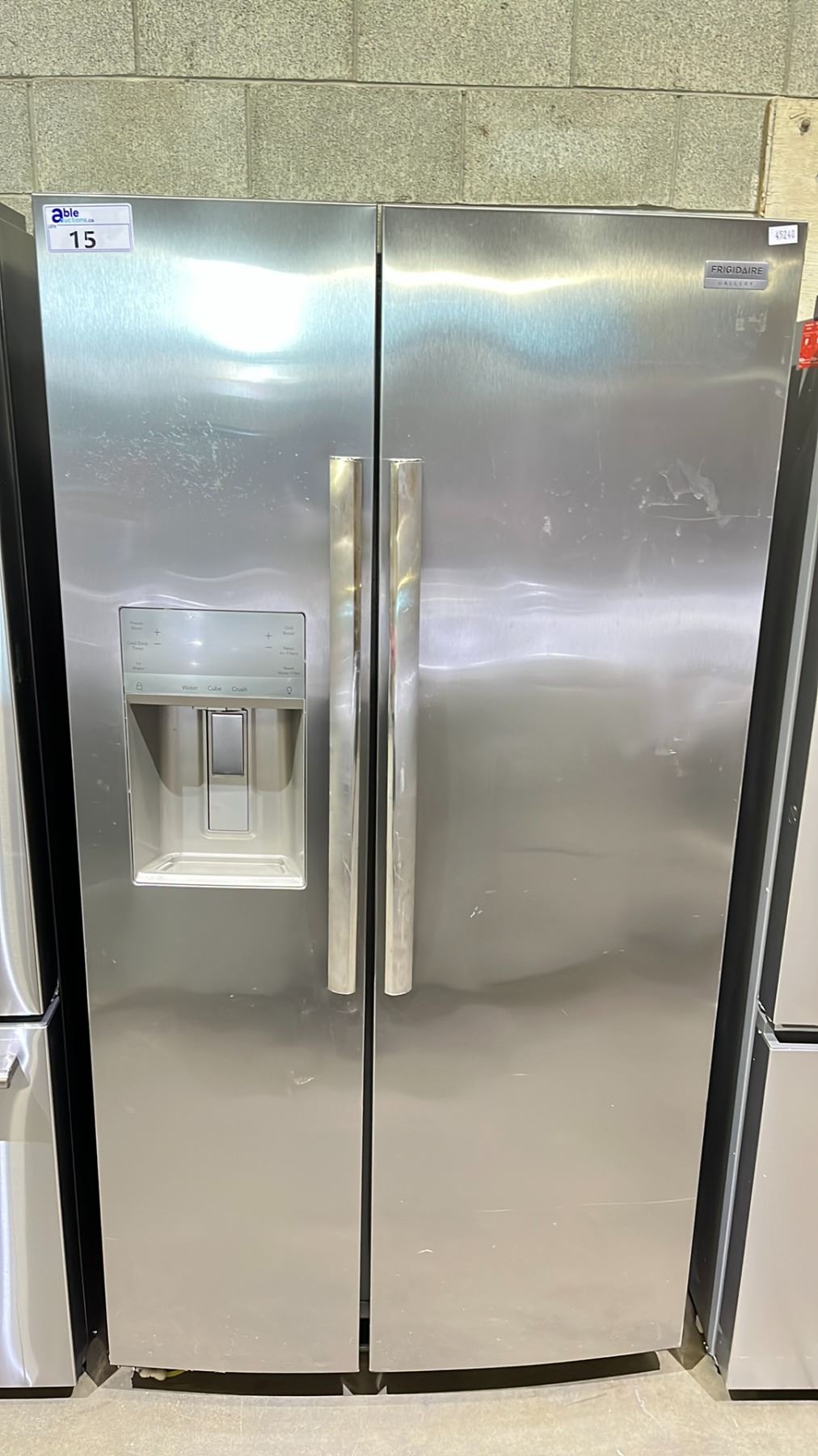 FRIGIDAIRE GALLERY STAINLESS STEEL SIDE-BY-SIDE FRIDGE WITH WATER/ICE DISPENSER 36"W