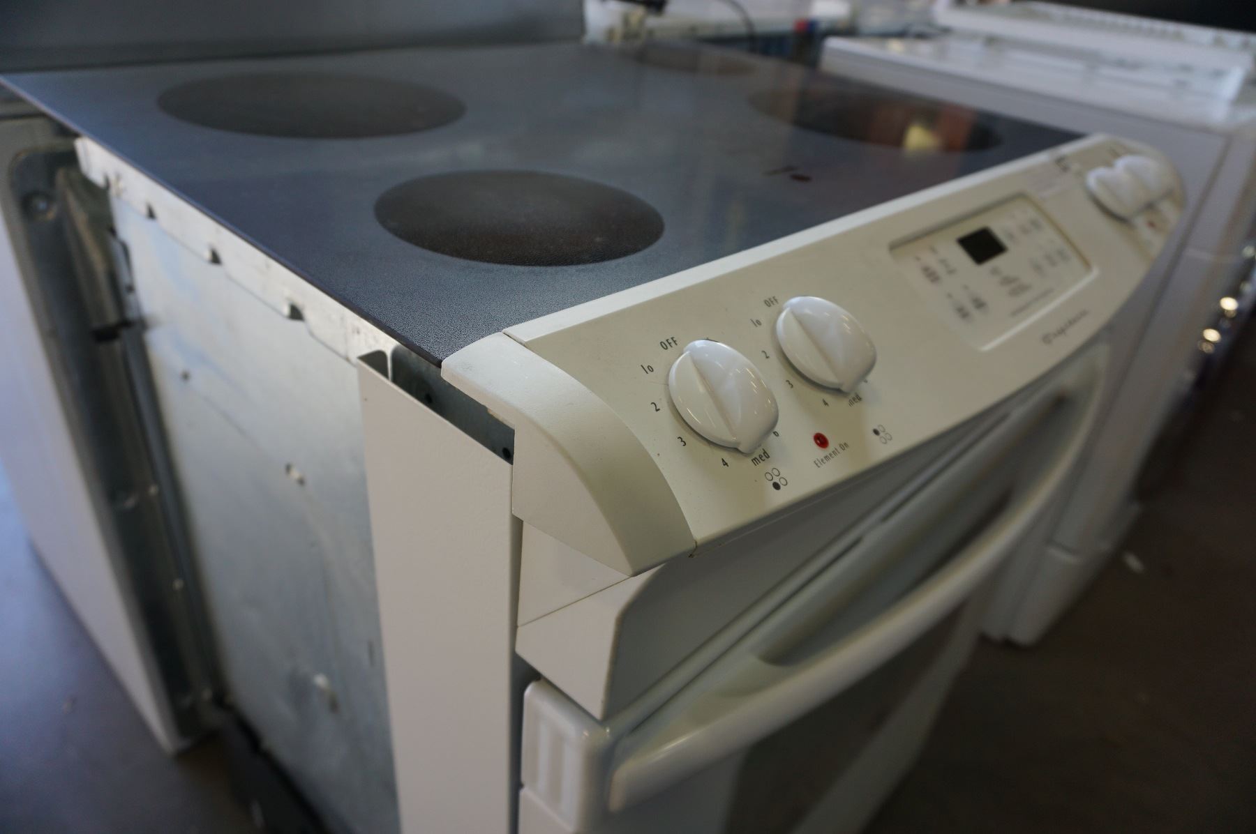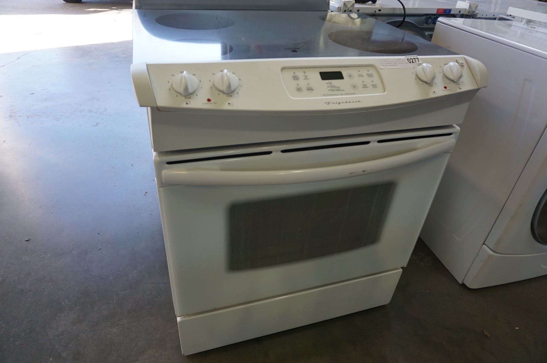 FRIGIDAIRE WHITE GLASS STOVE SELF CLEANING OVEN, TESTED AND WORKING GUARANTEED