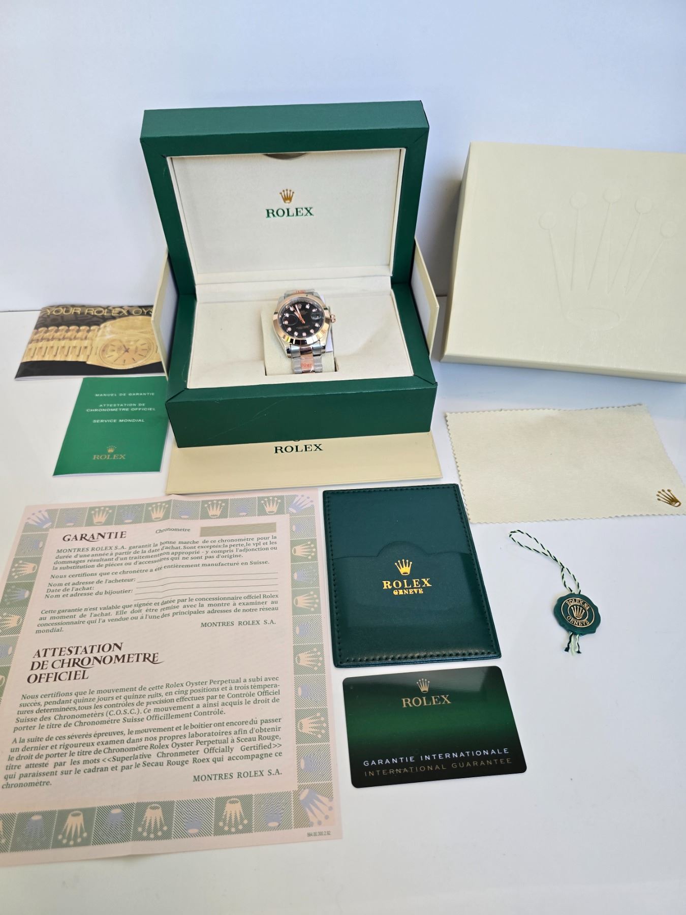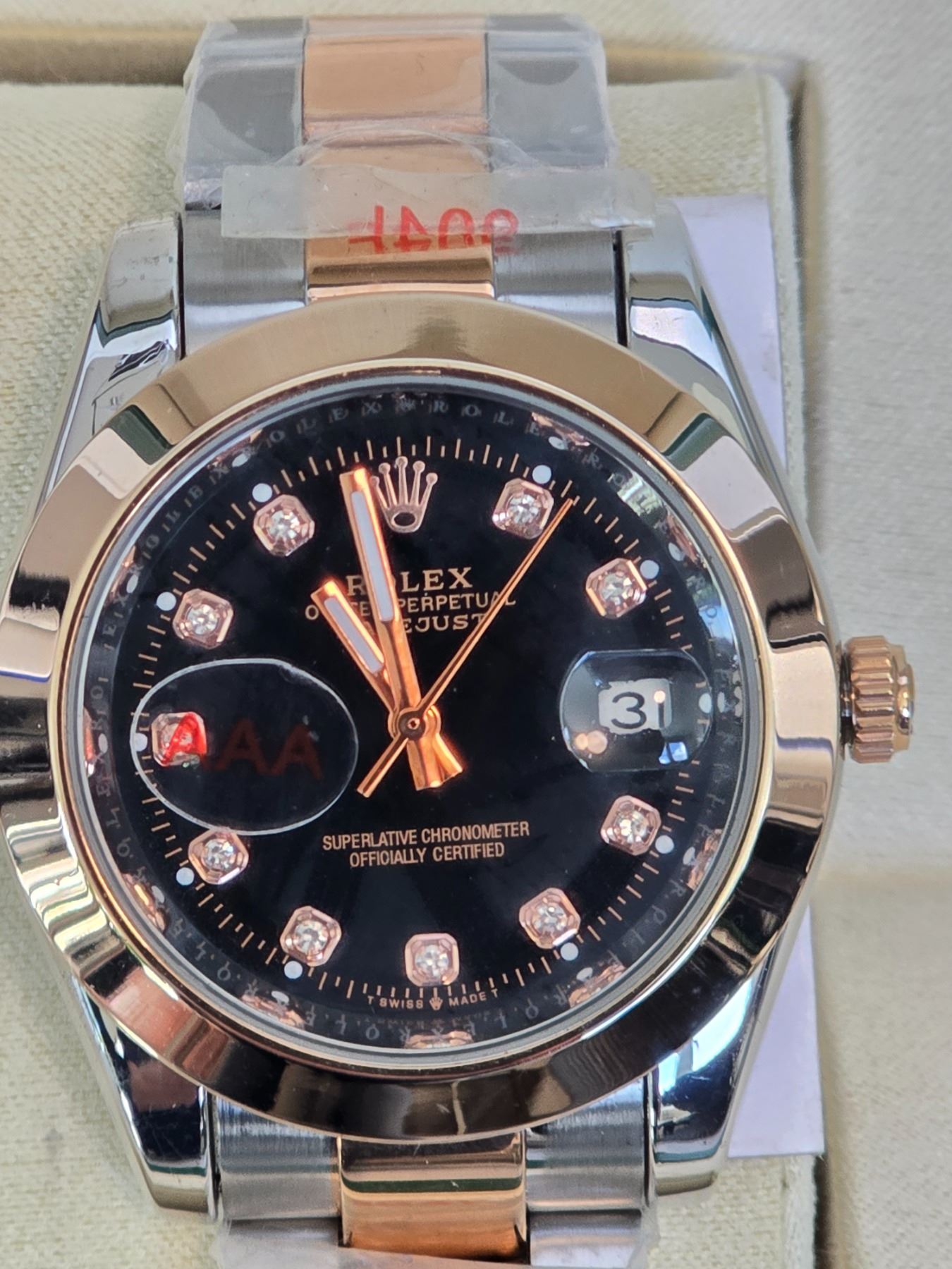 FULLY AUTOMATIC ROLEX DATEJUST 41 MM HIGH QUALITY REPLICA WATCH, REF# 126301 ROSE GOLD BEZEL AND CROWN, 904L STAINLESS STEEL CASE (THE SAME STEEL USED IN AUTHENTIC ROLEX WATCHES). 2 TONES OYSTERSTEEL BRACELET. FULL SET WITH BOX, PAPERS & BAG