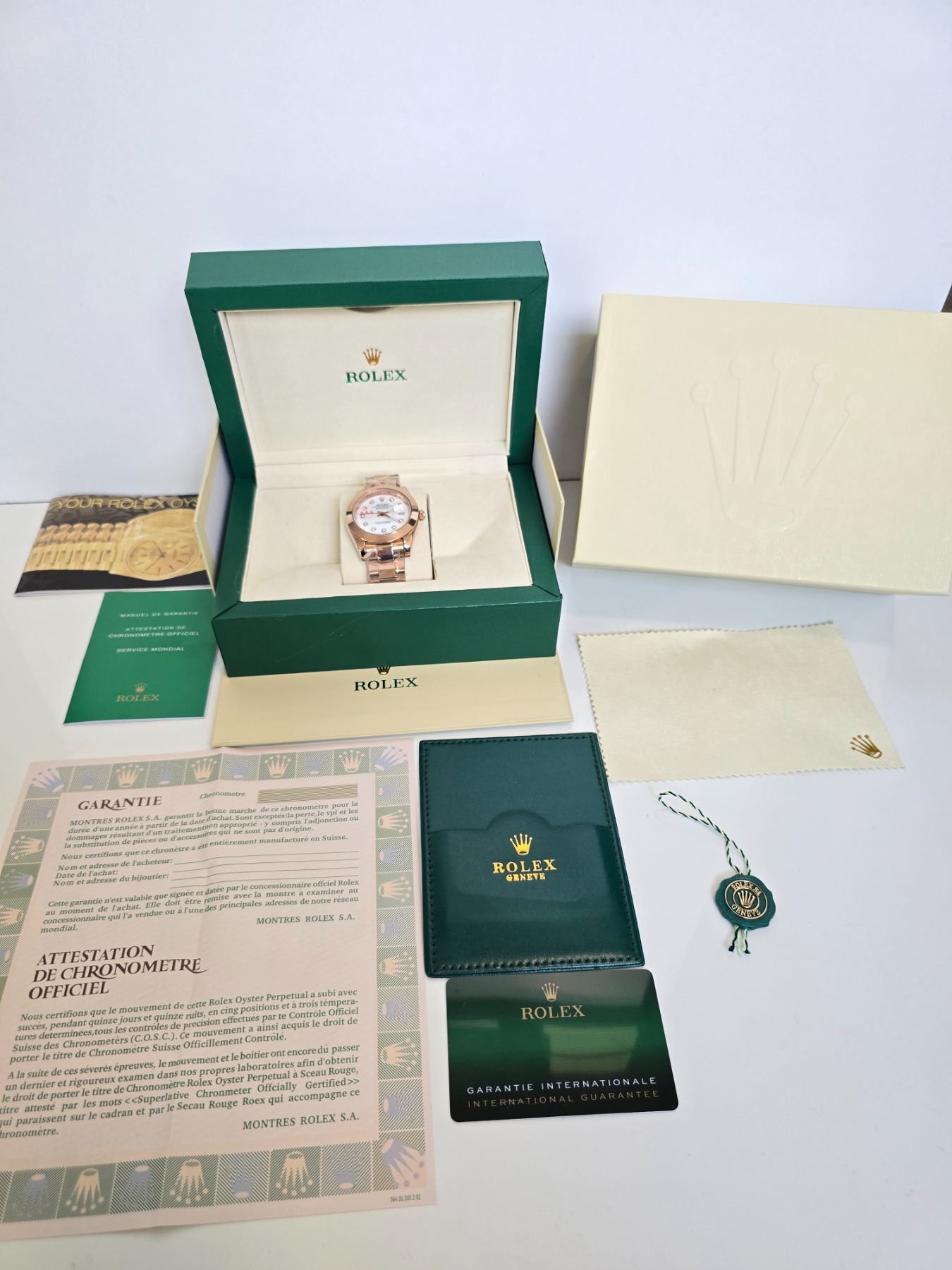 FULLY AUTOMATIC ROLEX DATEJUST ROSE GOLD HIGH QUALITY REPLICA WATCH, REF# 278245 MOTHER OF PEARL DIAL WITH DIAMOND INDEXES, GOLDEN BEZEL,CASE AND CROWN, 904L STAINLESS STEEL CASE (THE SAME STEEL USED IN AUTHENTIC ROLEX WATCHES)