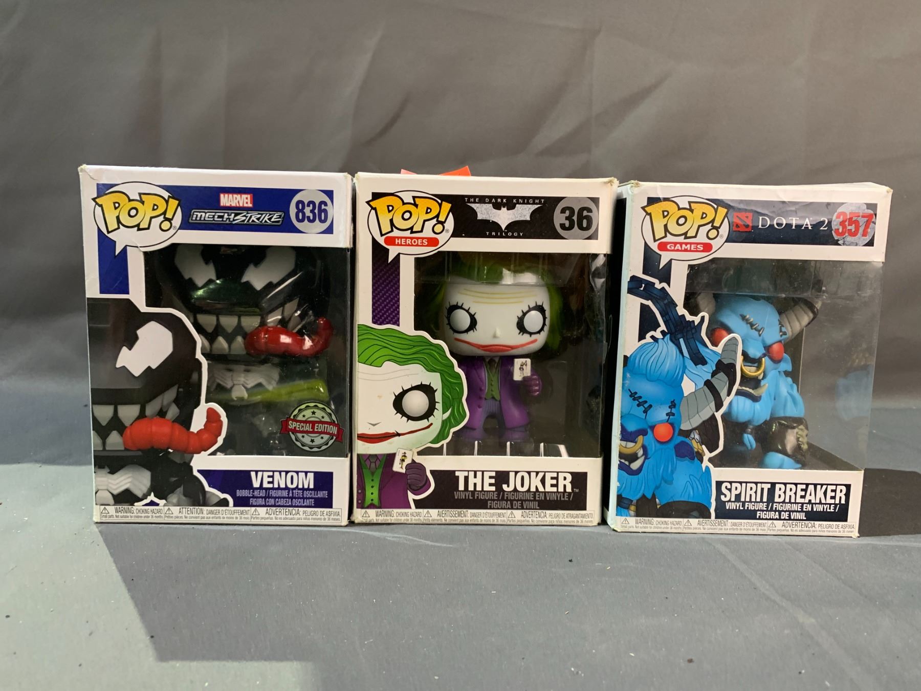 FUNKO POP! HEROES THE JOKER #36, GAMES SPIRIT BREAKER #357 & VENOM #836