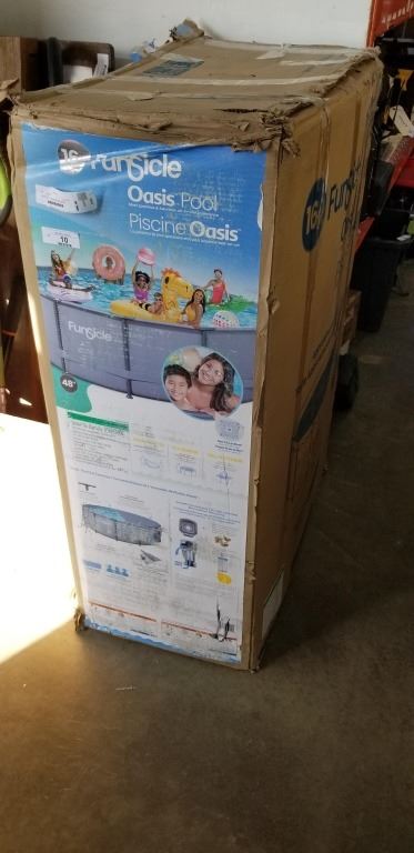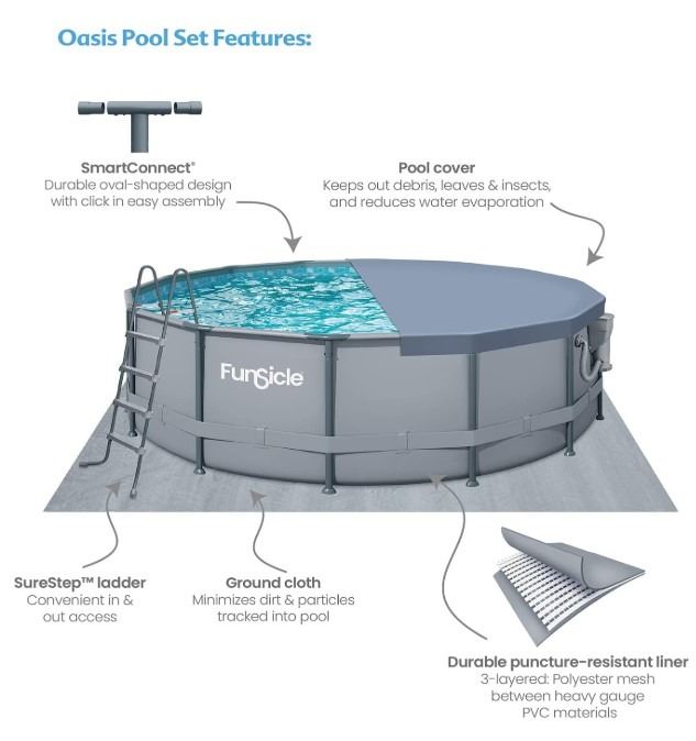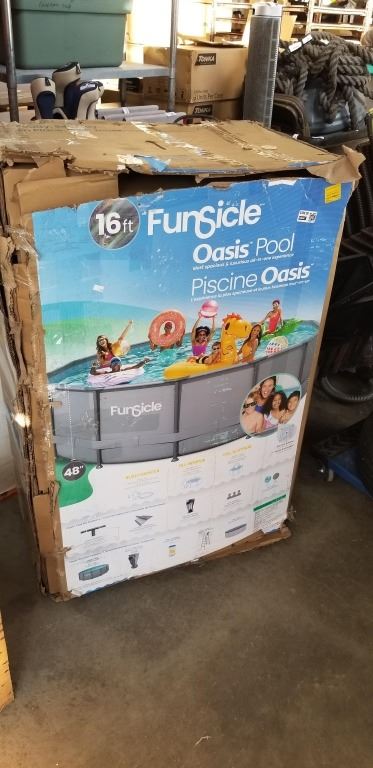 FUNSICLE 16FT X 48IN ROUND OASIS ABOVE GROUND POOL, WITH SKIMMERPLUS FILTER PUMP & LADDER RETAIL $900