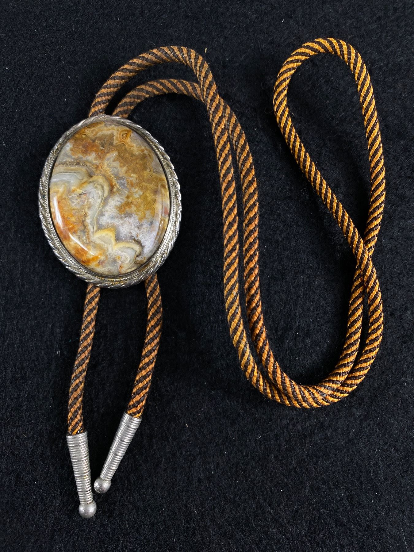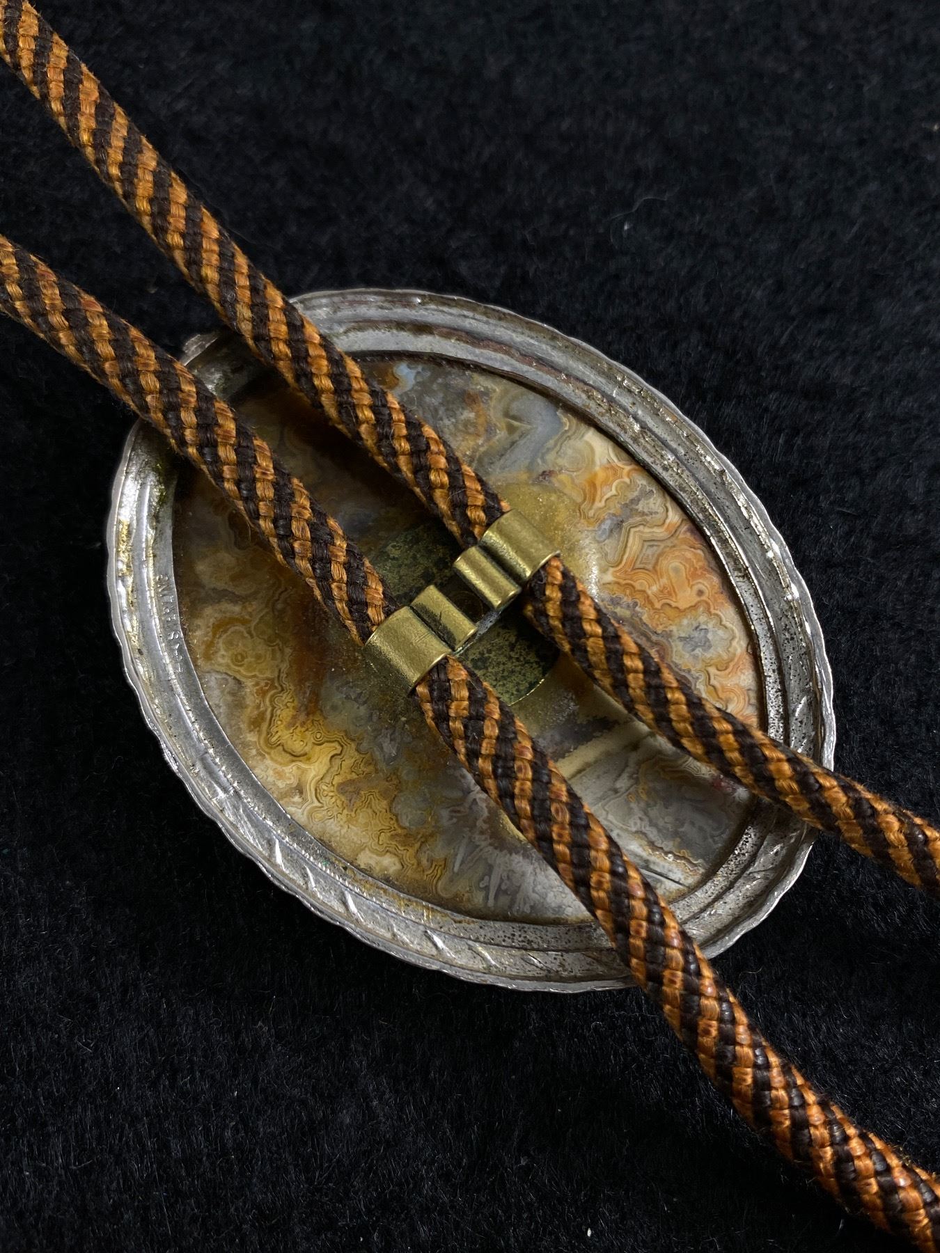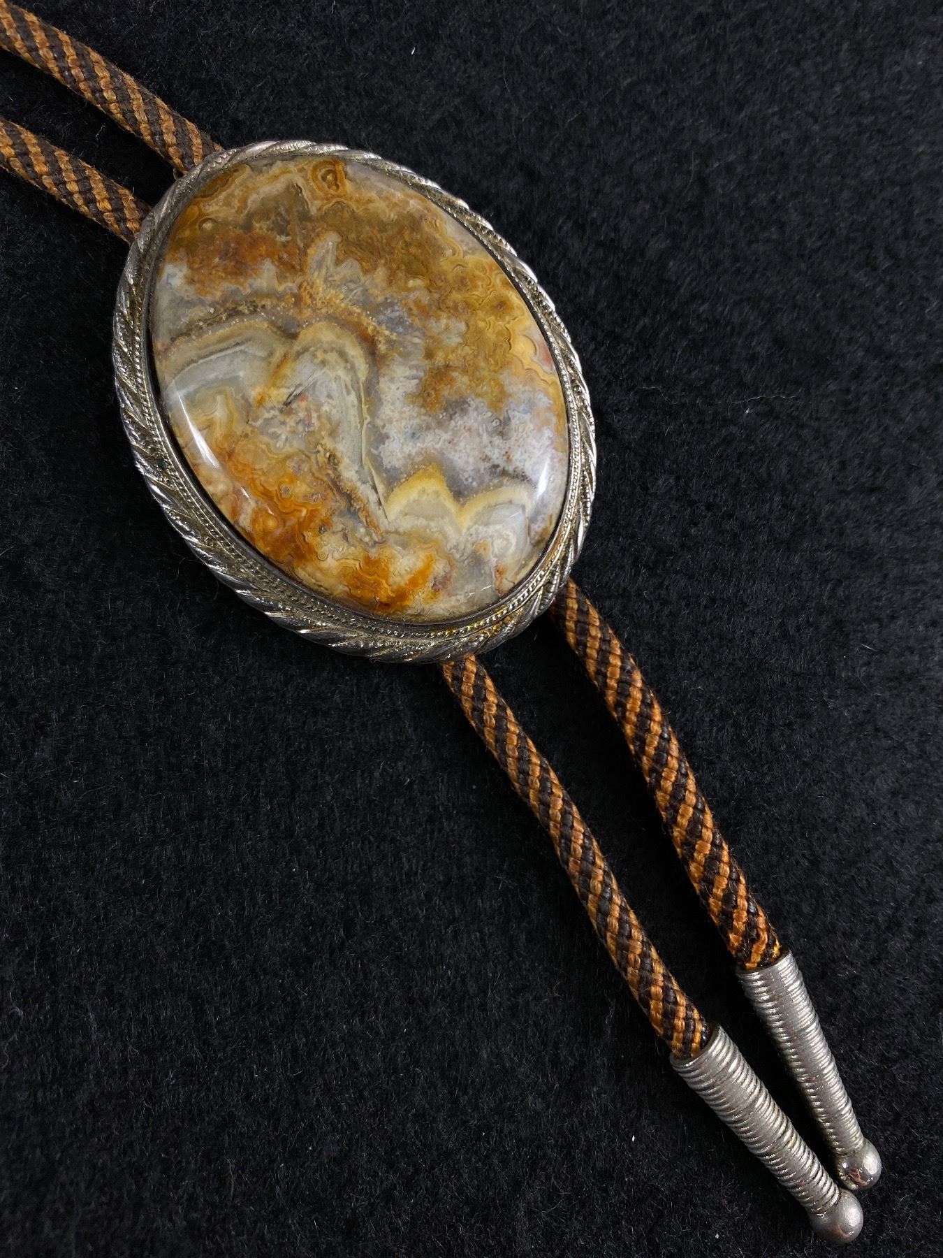 Fabulous 2.5" L Sterling & Agate Bolo Tie