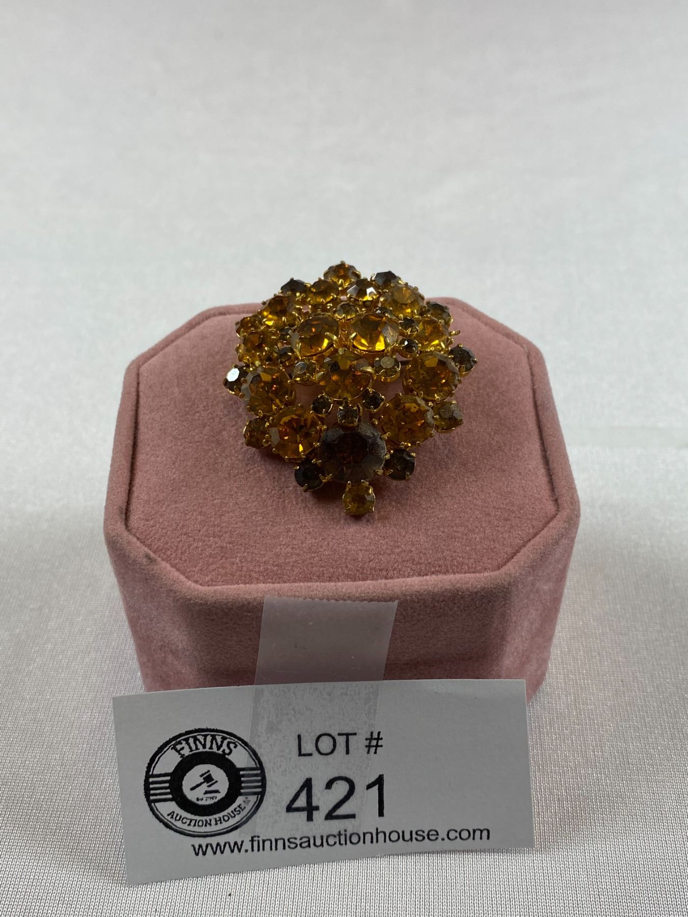 Fabulous Amber Rhinestone 1950's Brooch Great Condition