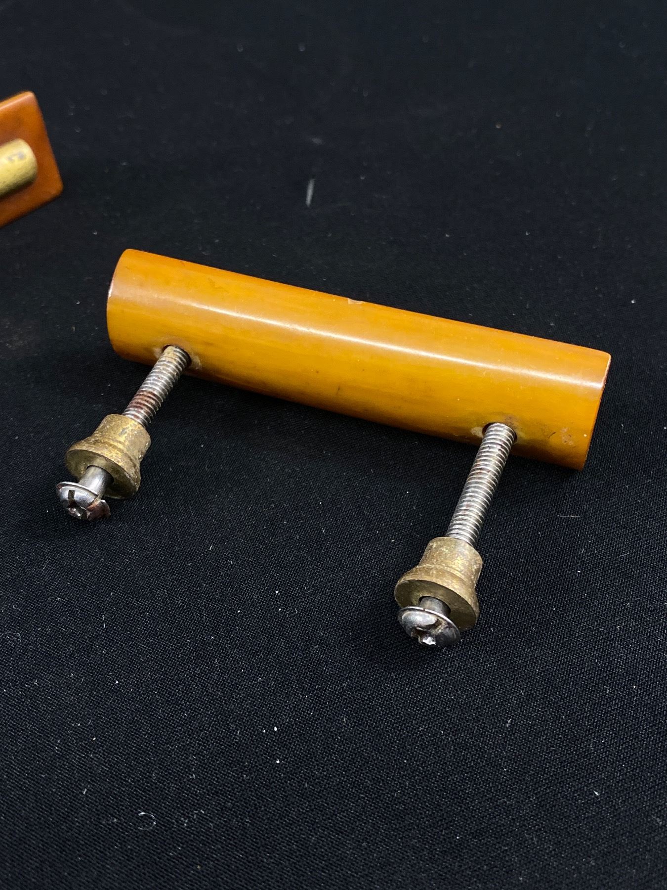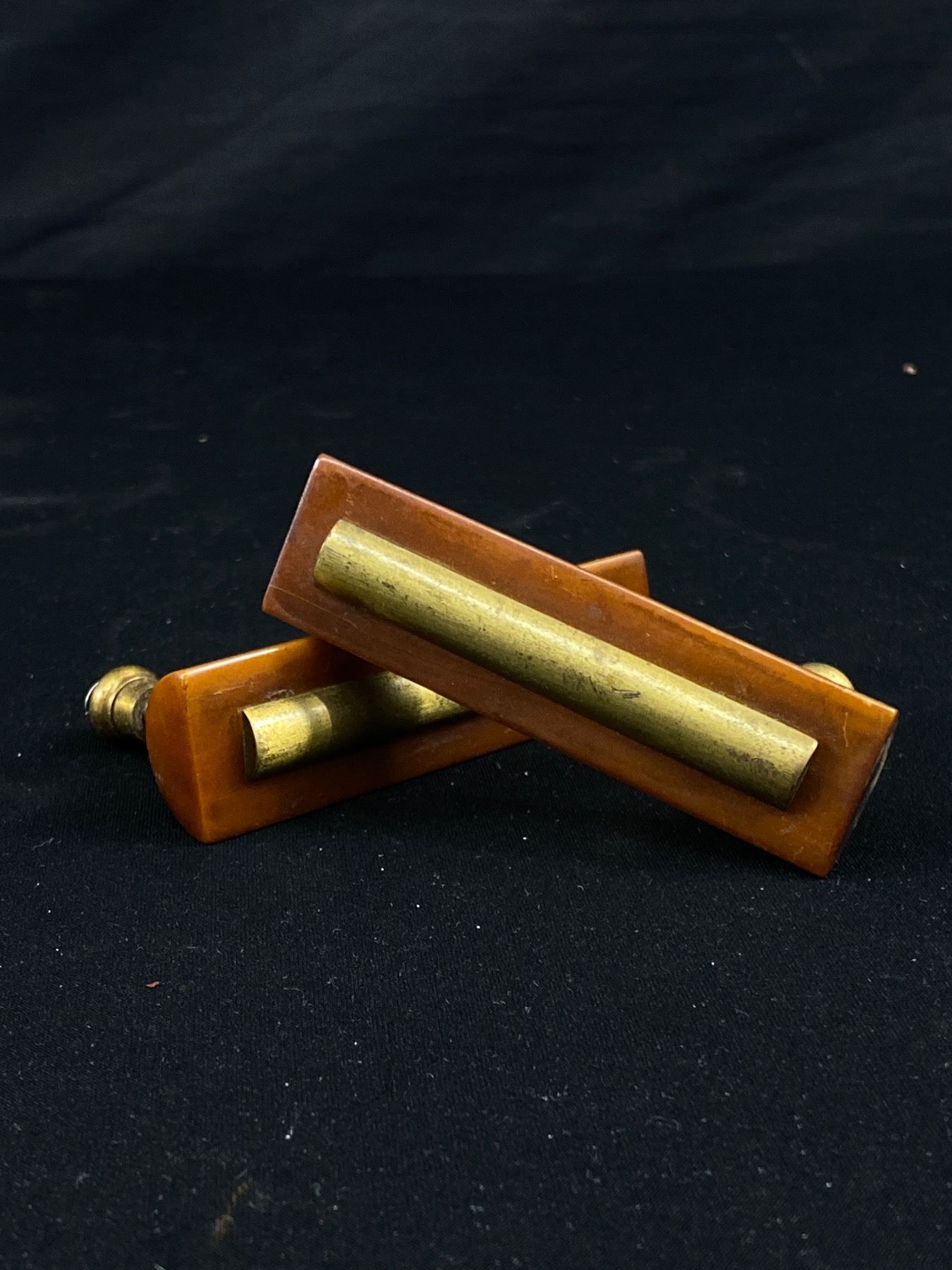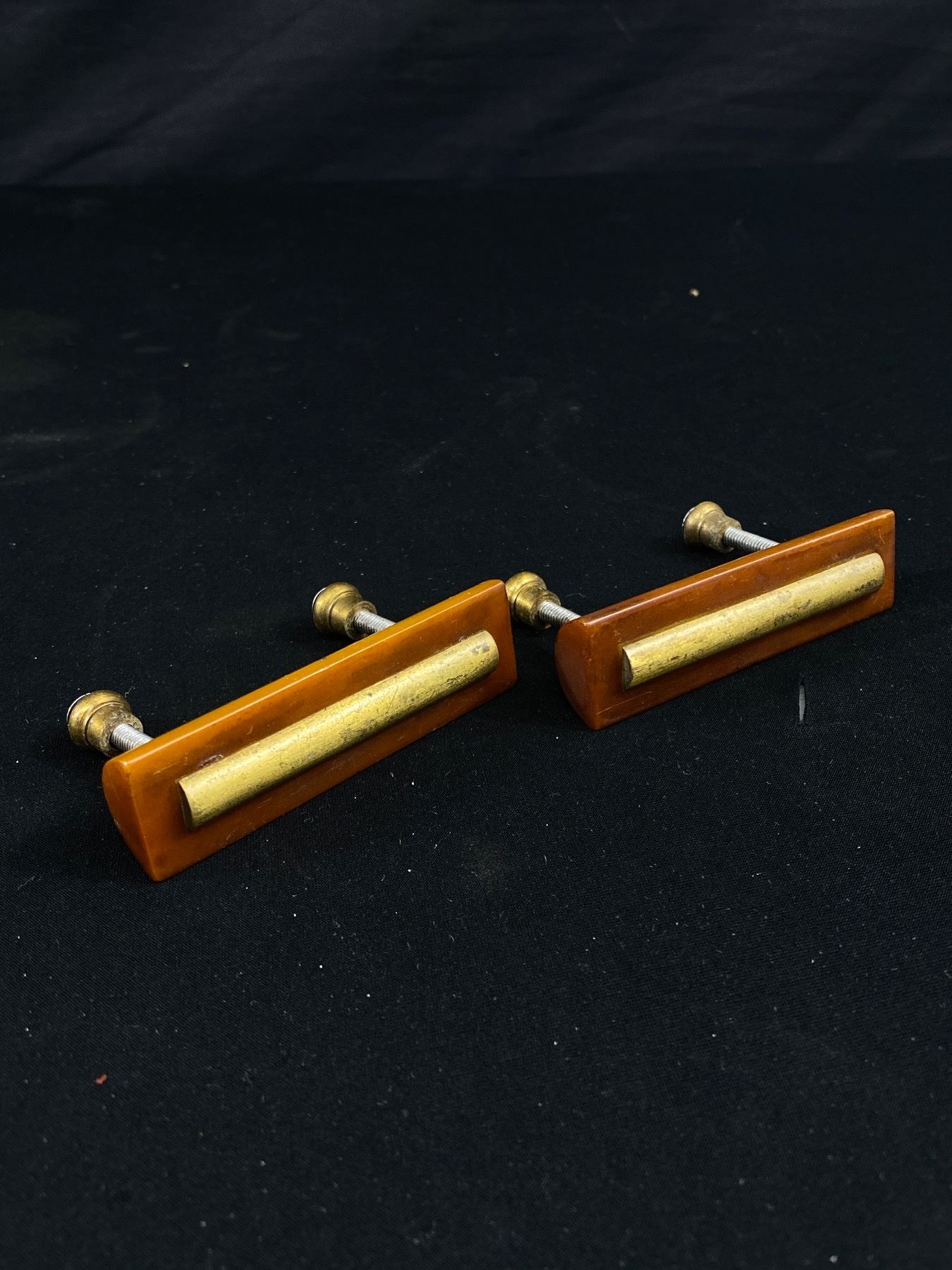 Fabulous Pair Of Art Deco 1930's Brass & Butterscotch Bakelite Handles