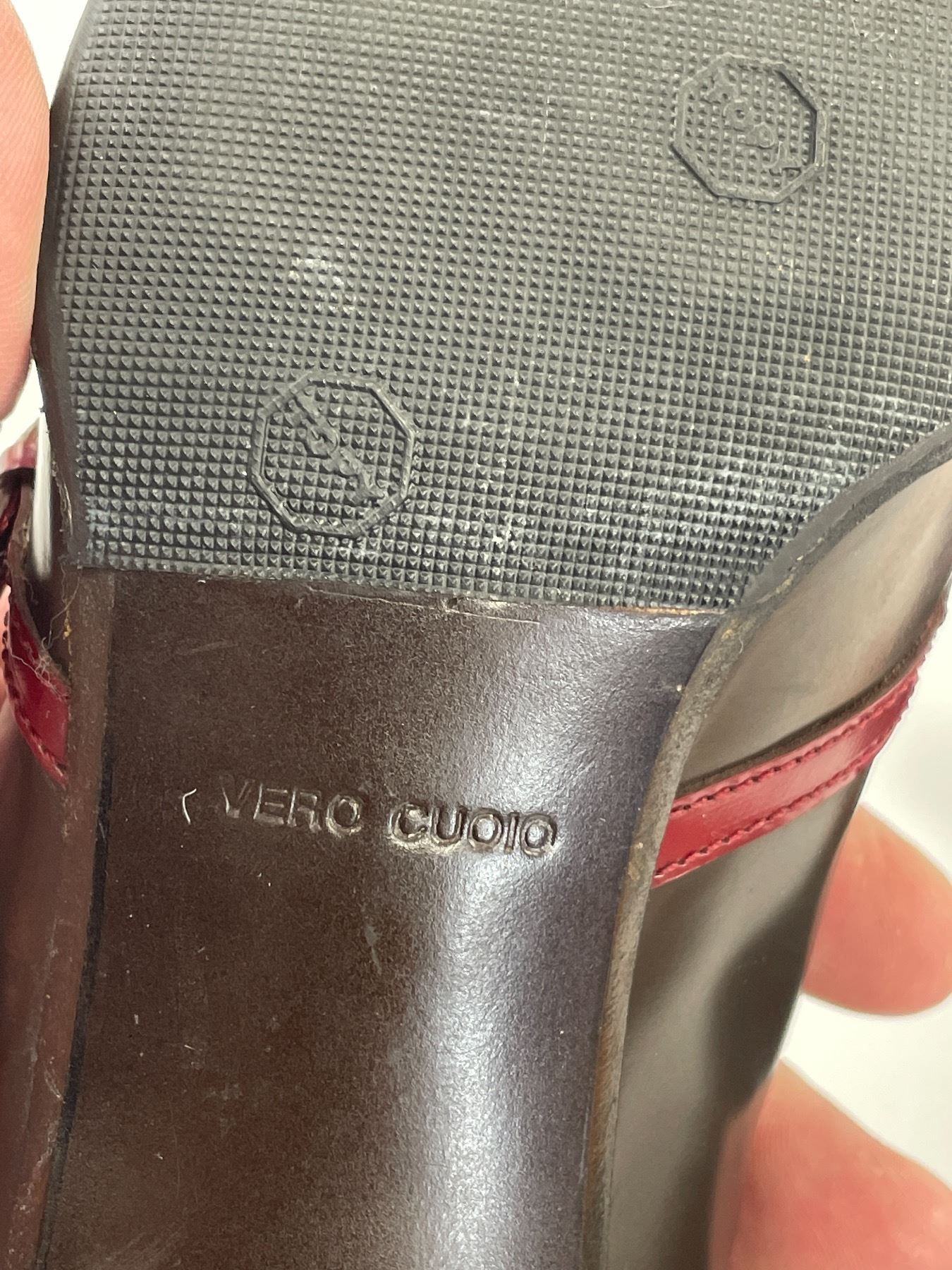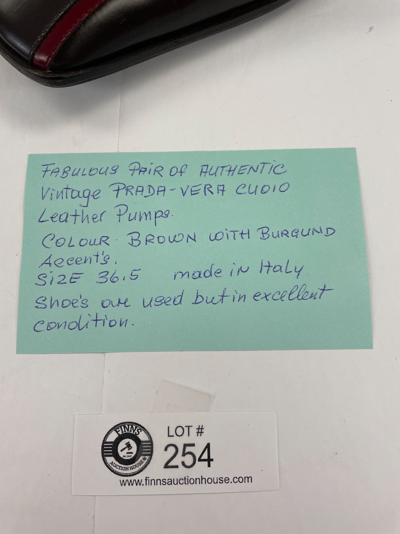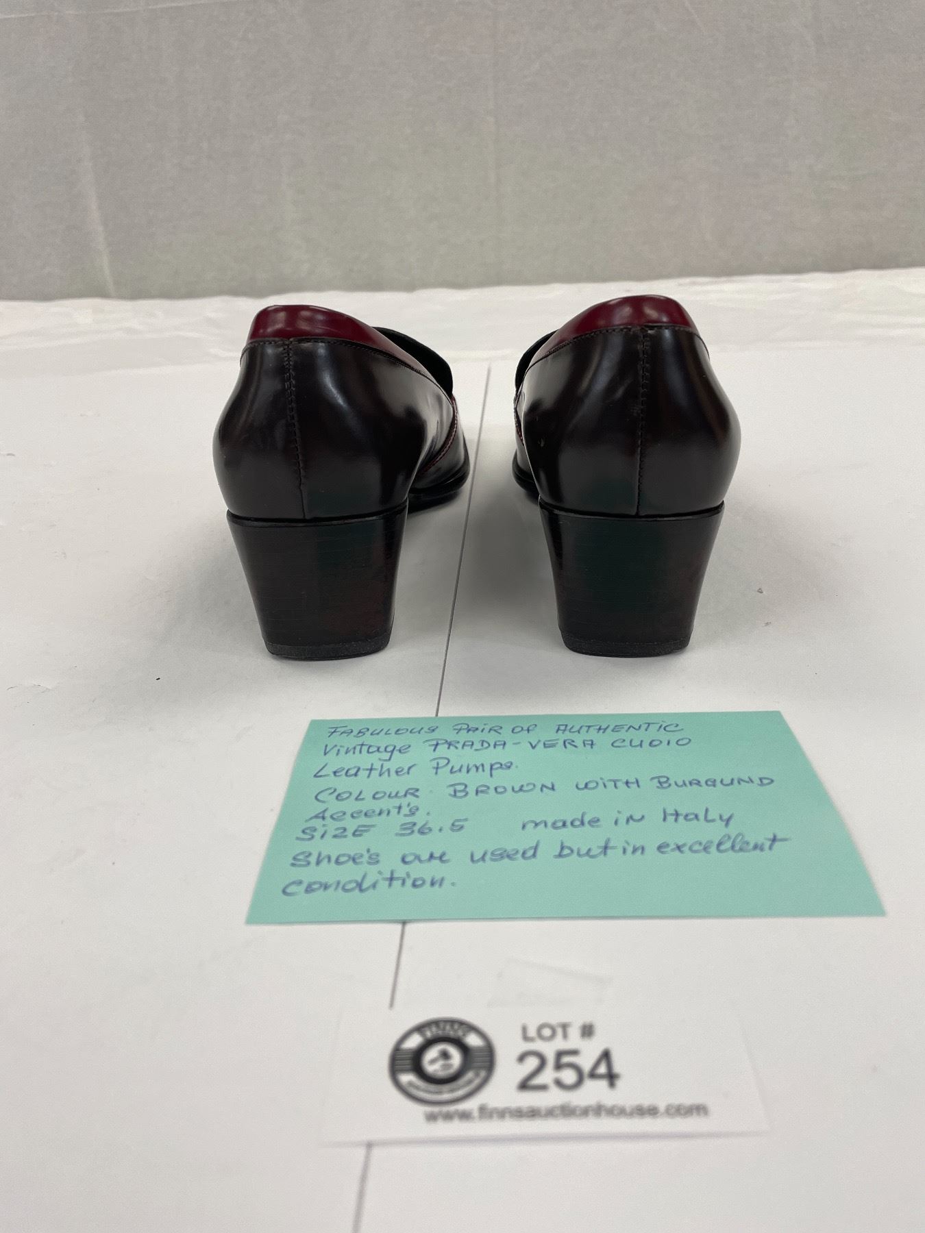 Fabulous Pair of Authentic Vintage Prada Vera Cuoio Leather Pumps Size 36.5 Brown with Burgandy Accents Made in Italy Used but Excellent Condition