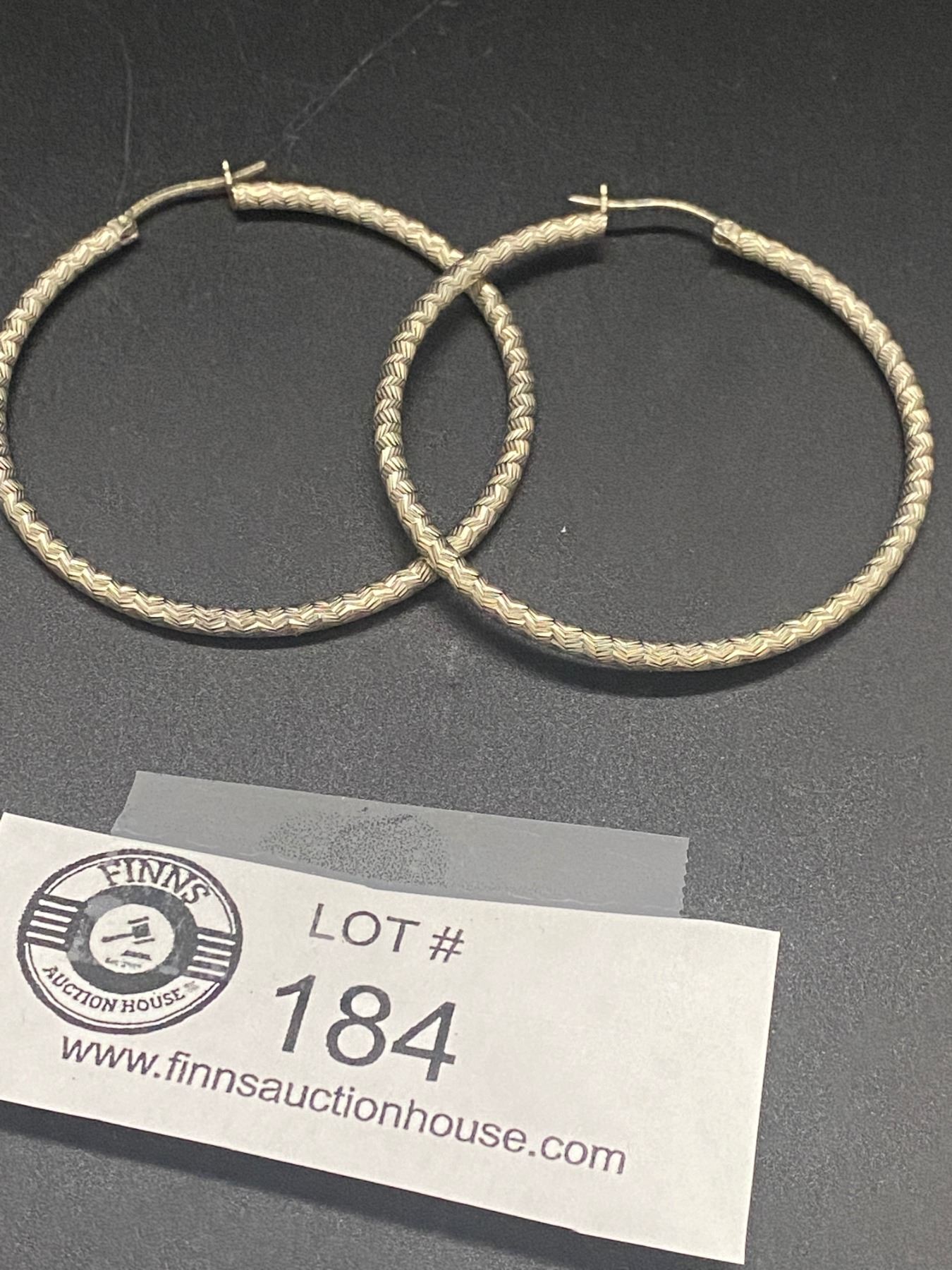 Fabulous Pair of Large 2  Diameter Engraved Sterling Hoop Earrings