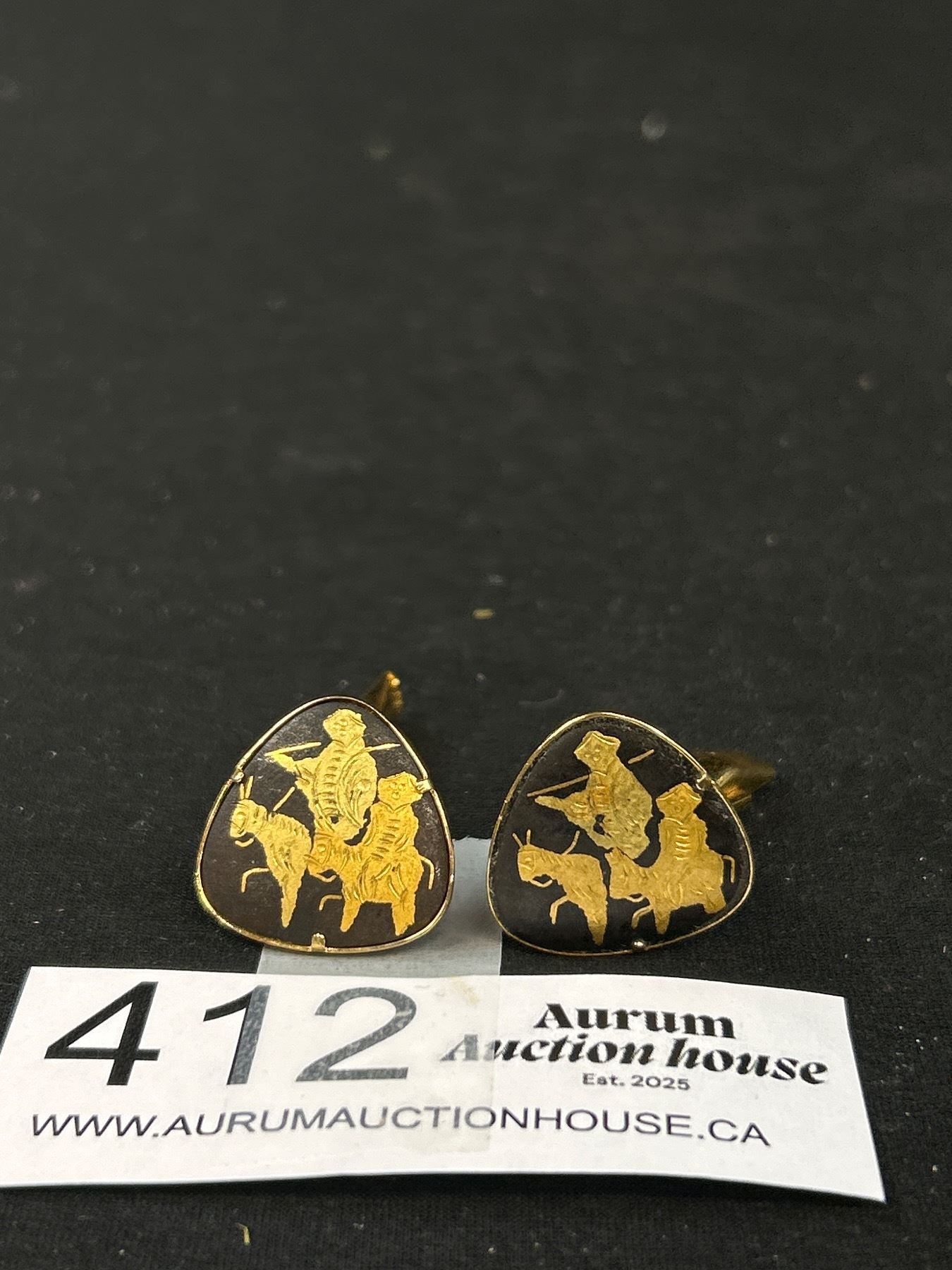 Fabulous Pair of Spanish Toledo Gold Inlay Cufflinks