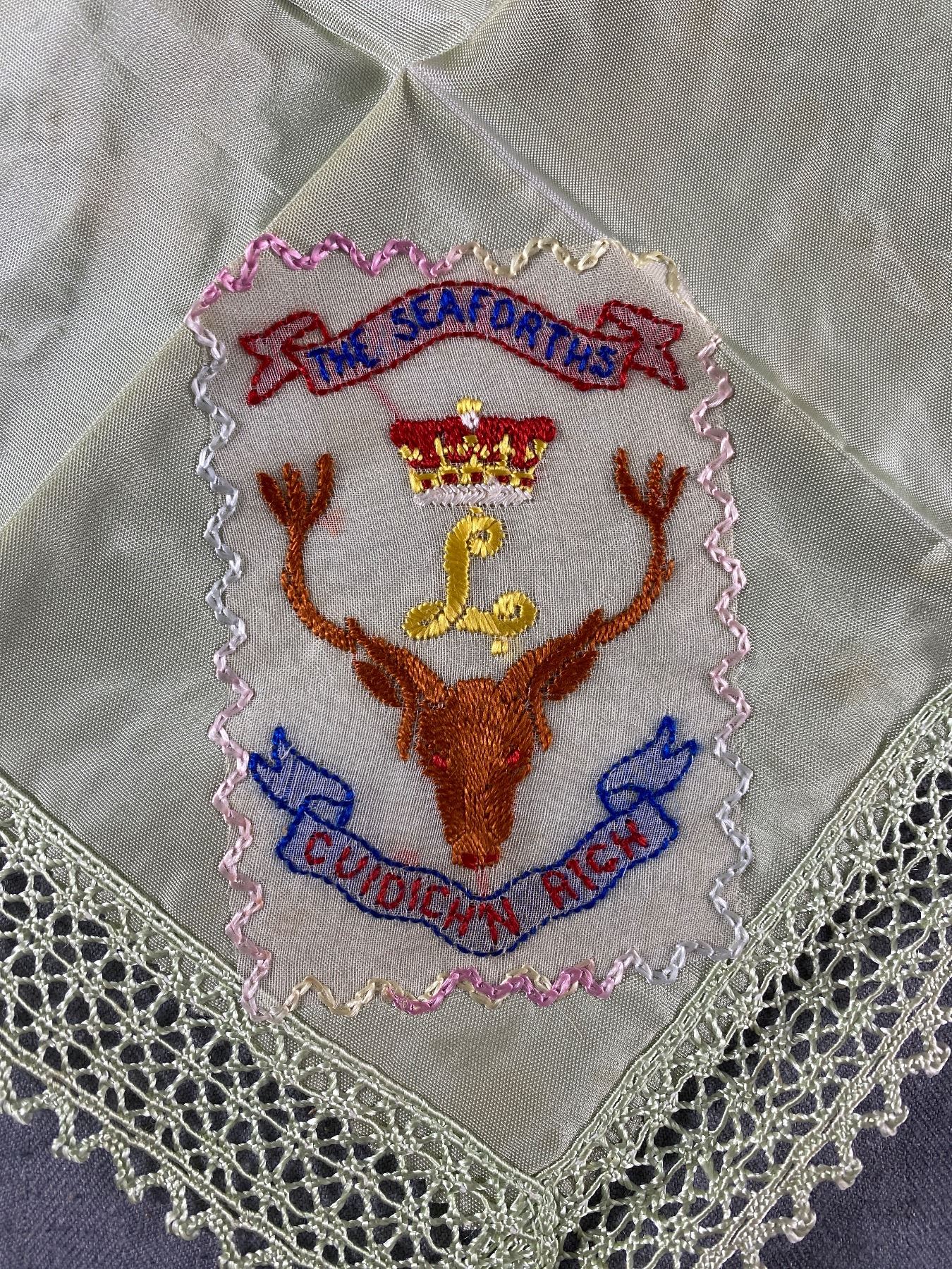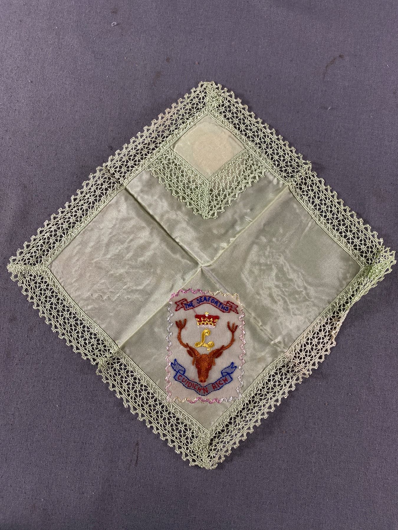 Fabulous SeaForth Highlanders Embroidered (Sweetheart) Handkercheif in Great Condition WWII Vintage