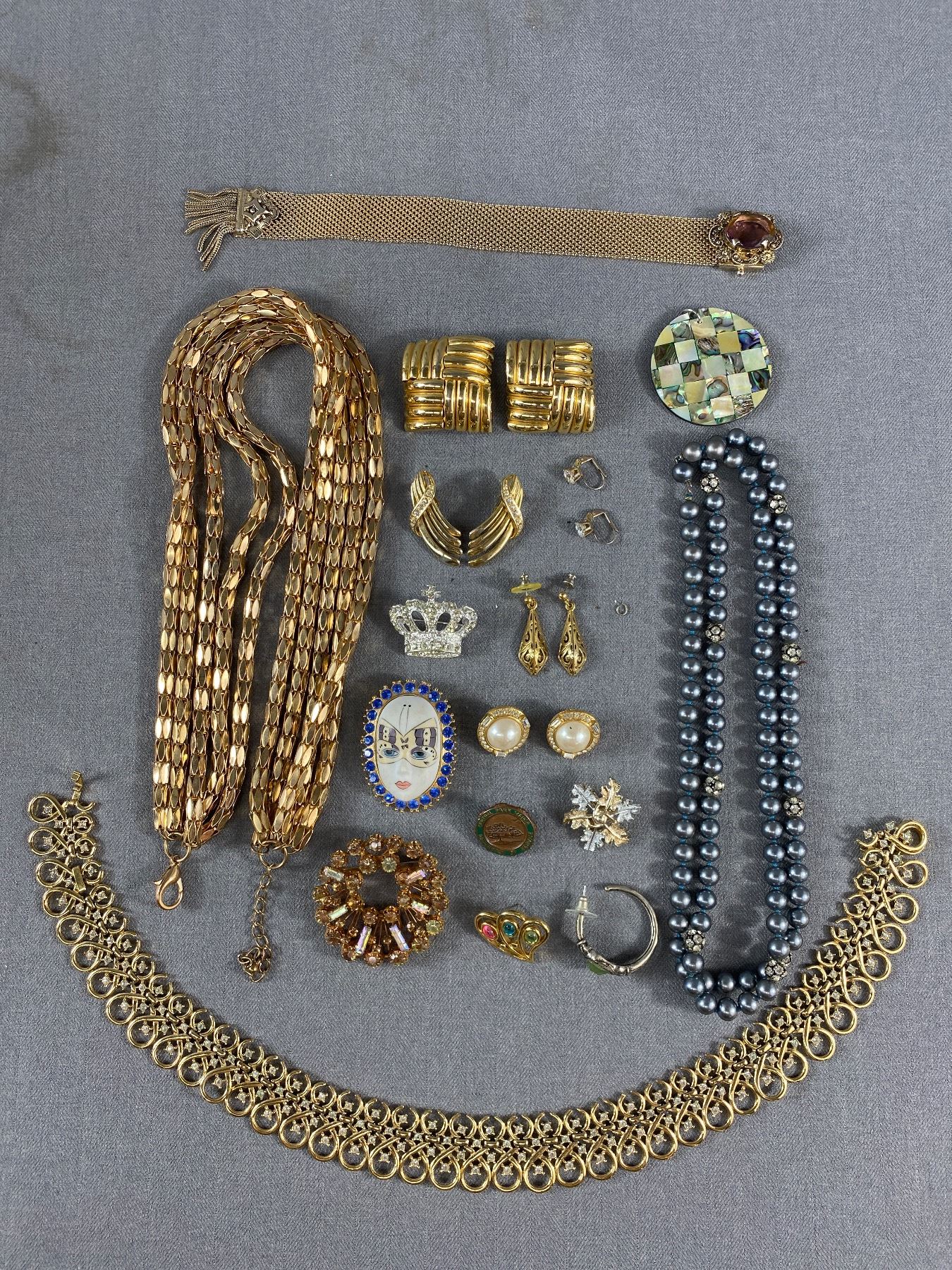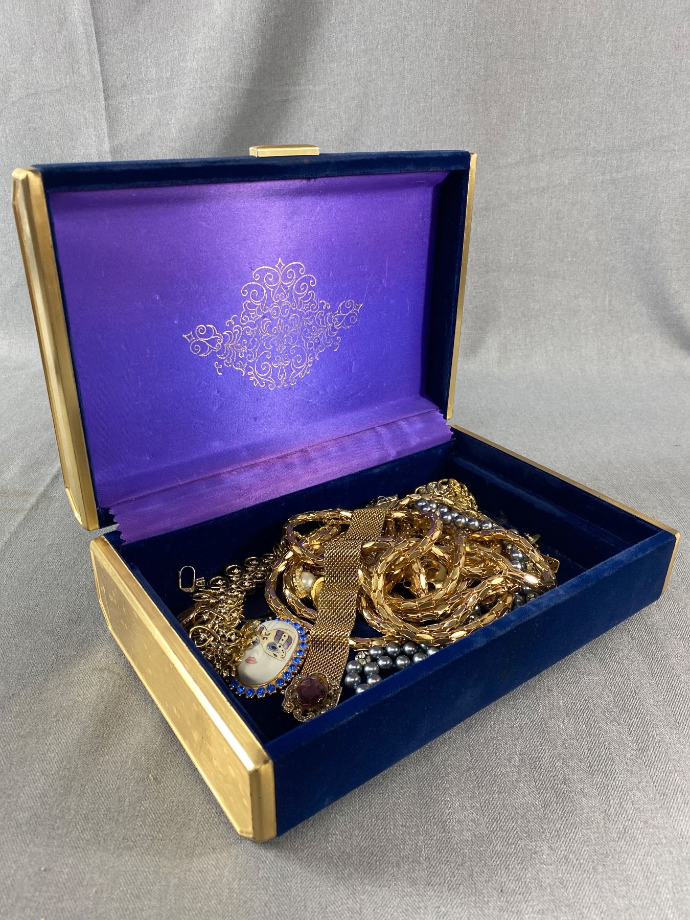 Fabulous Vintage Blue Velvet Jewel Box with Costume Jewelry Contents