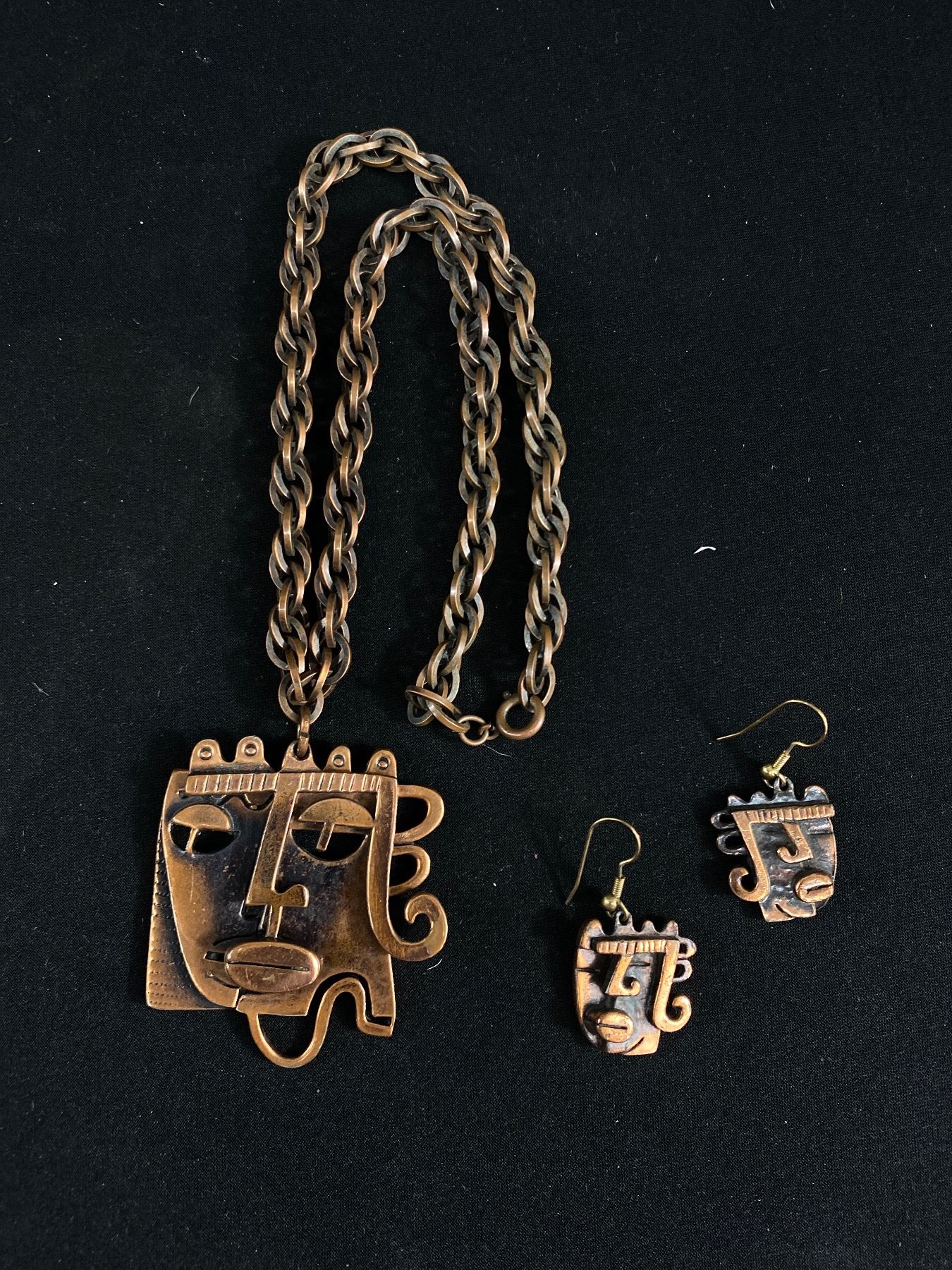 Fabulous Vintage Rabajes Brutalist Copper Necklace & Earrings Set